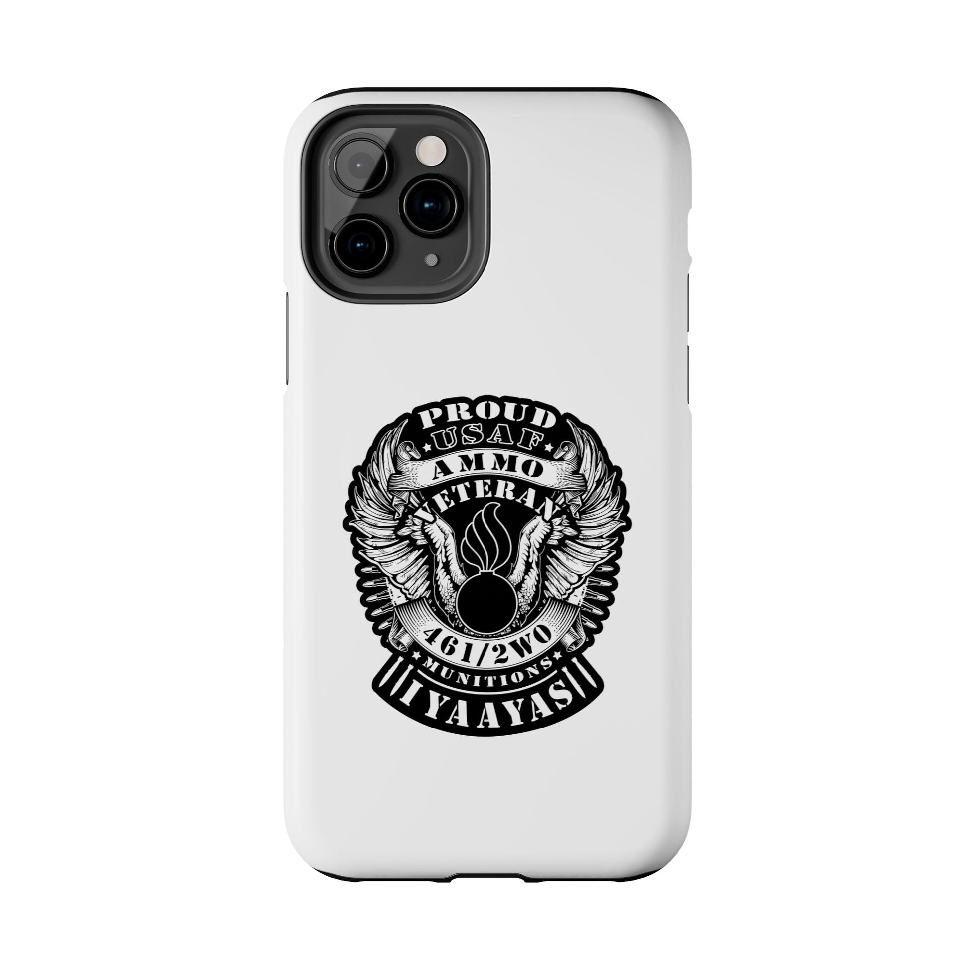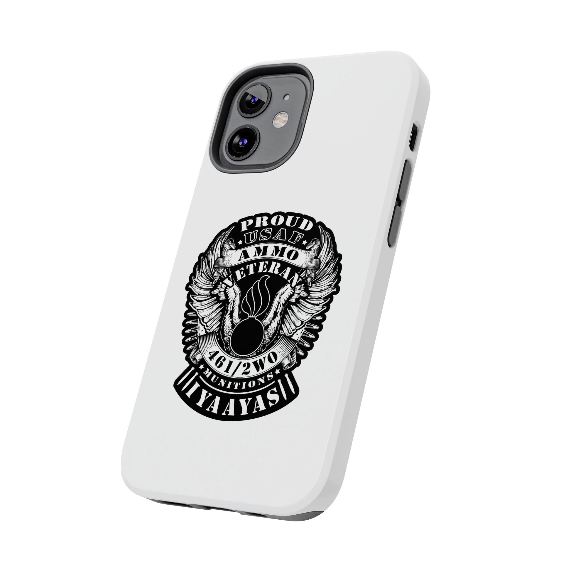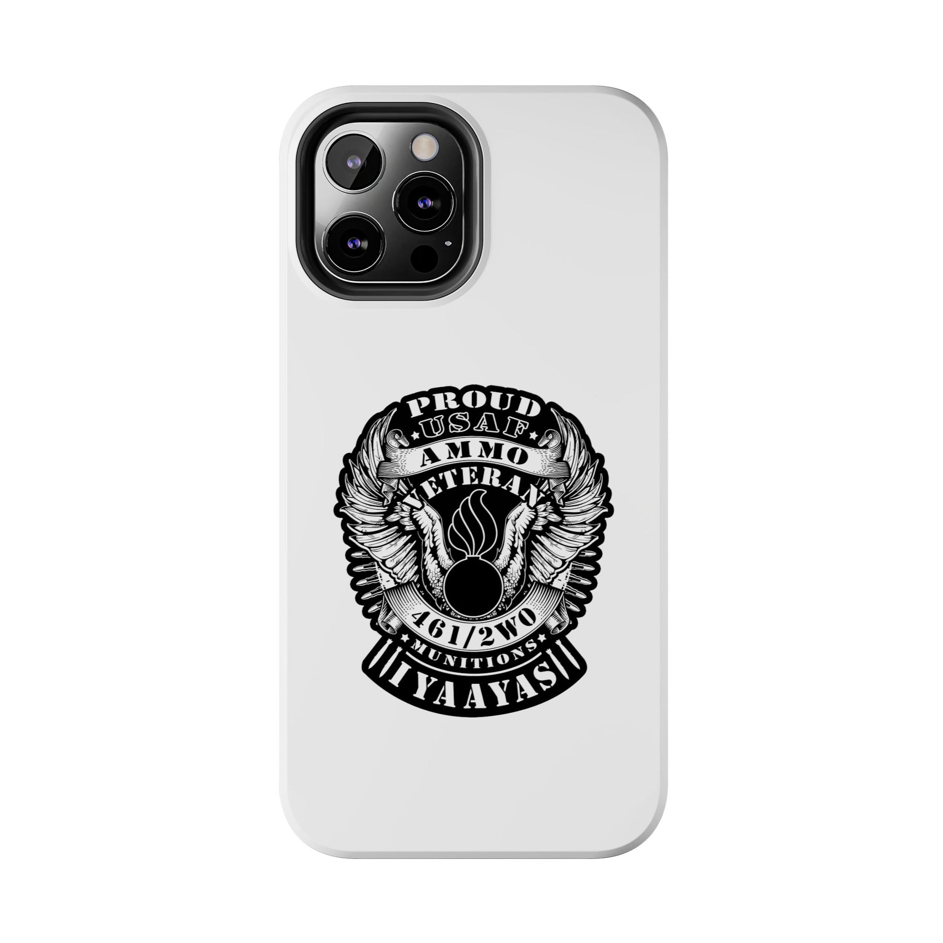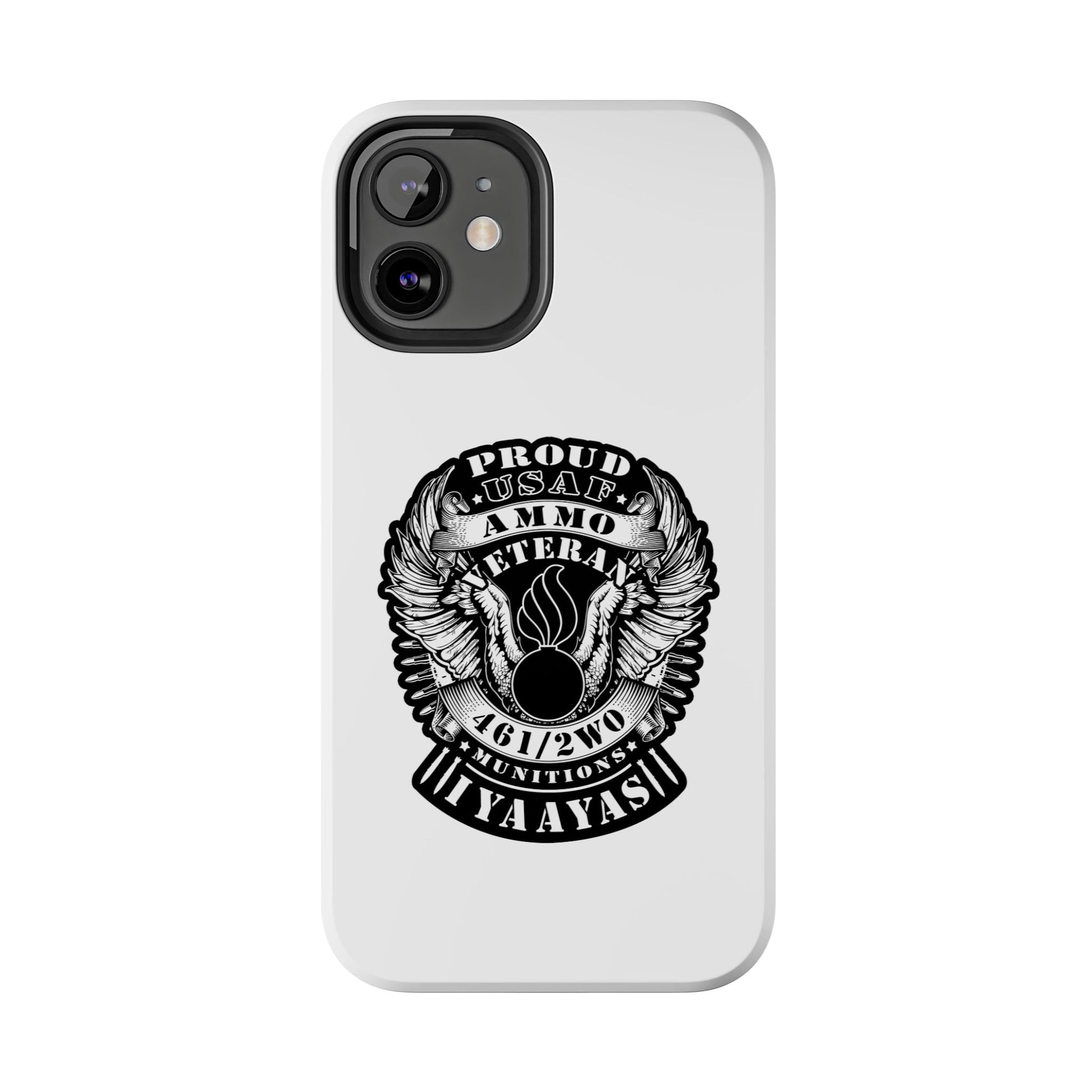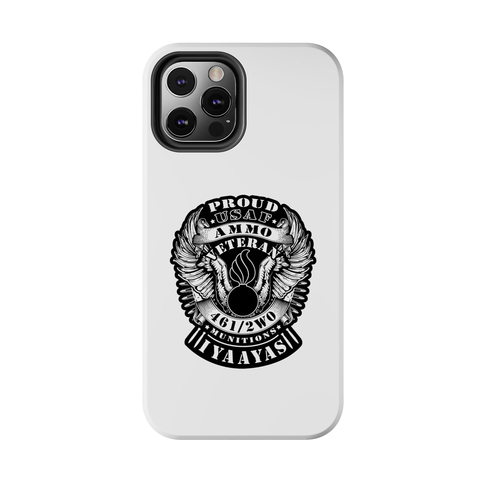 Proud USAF AMMO Veteran 461 2W0 Munitions IYAAYAS Pisspot Eagle Wings Vintage Ribbon Scrolls White Background Tough Phone Cases