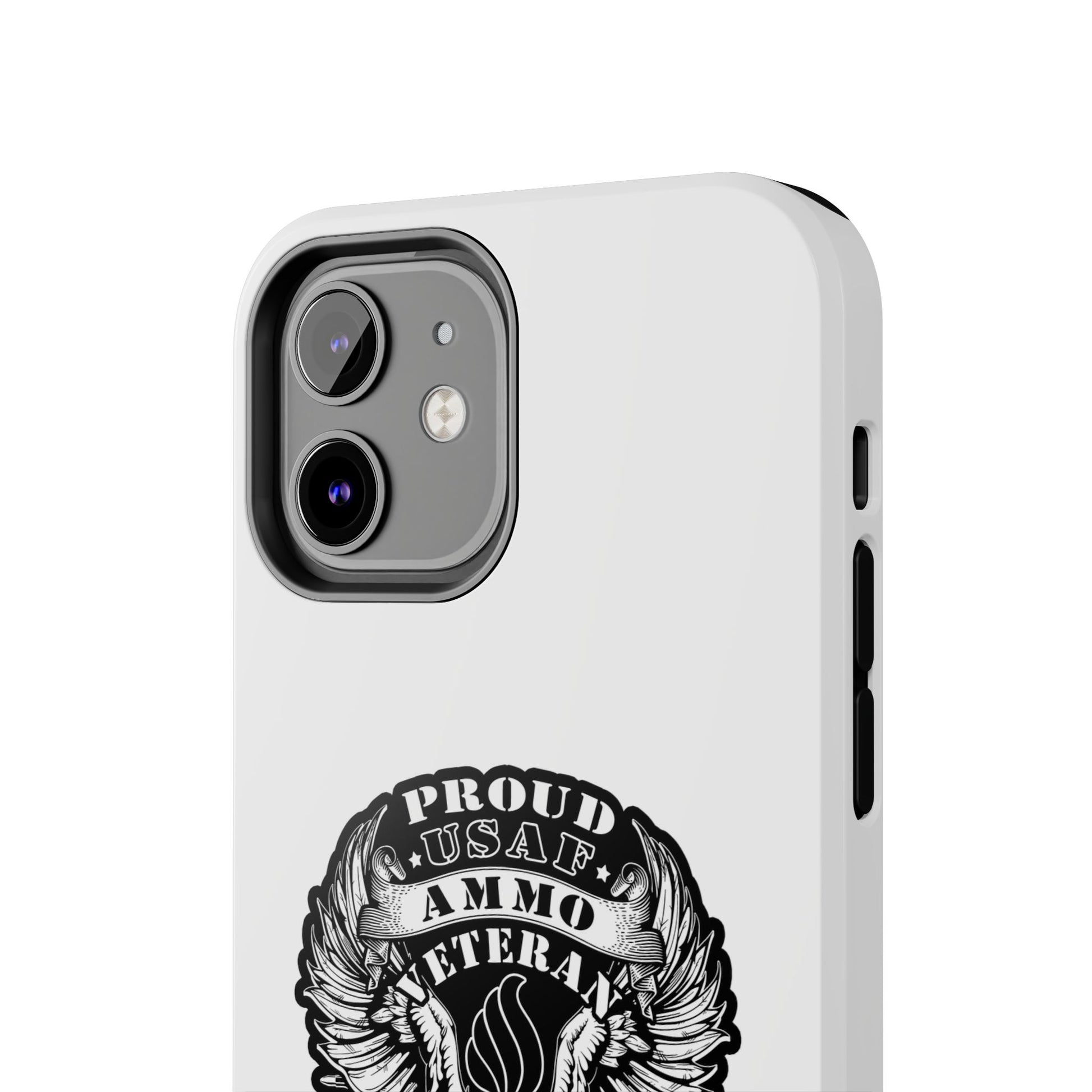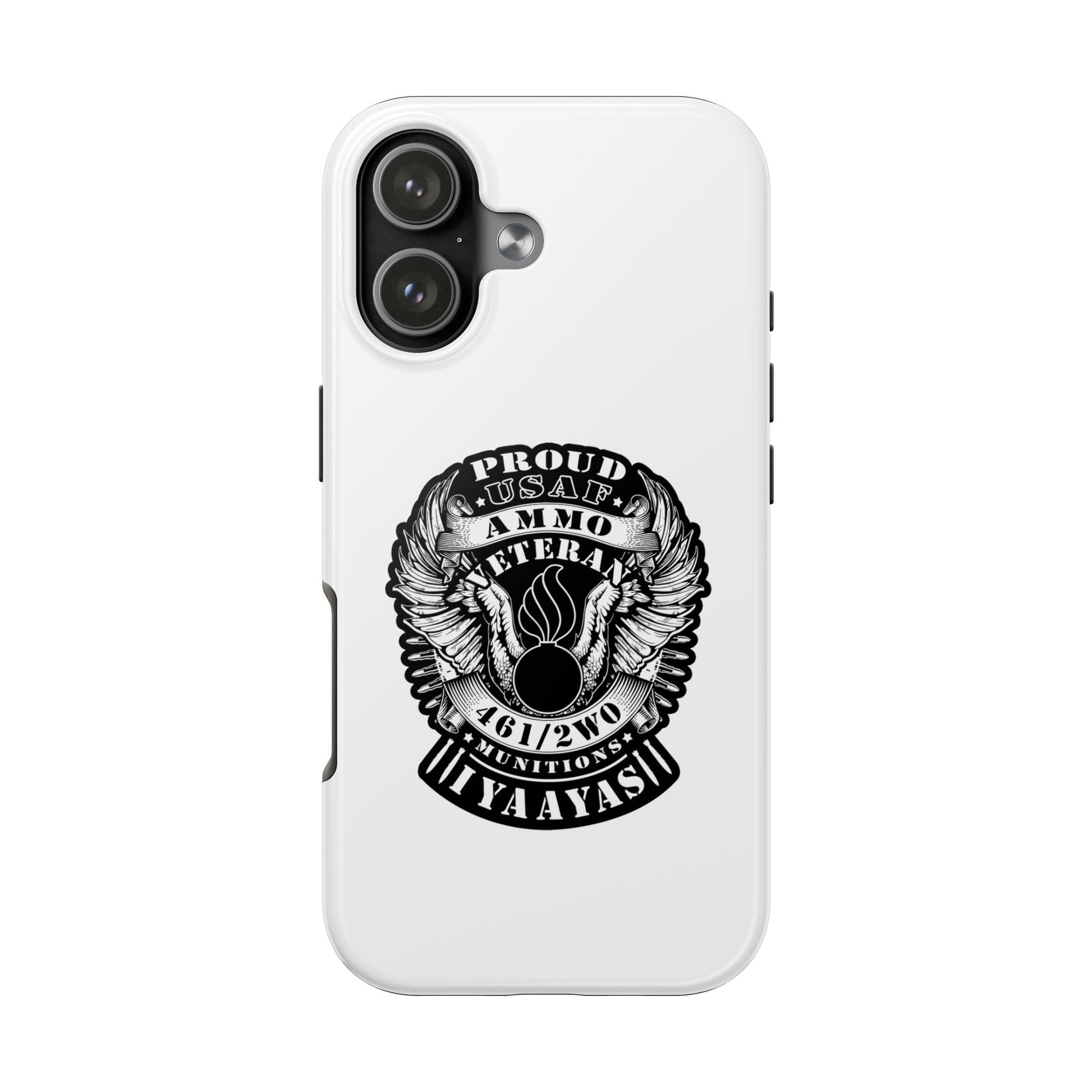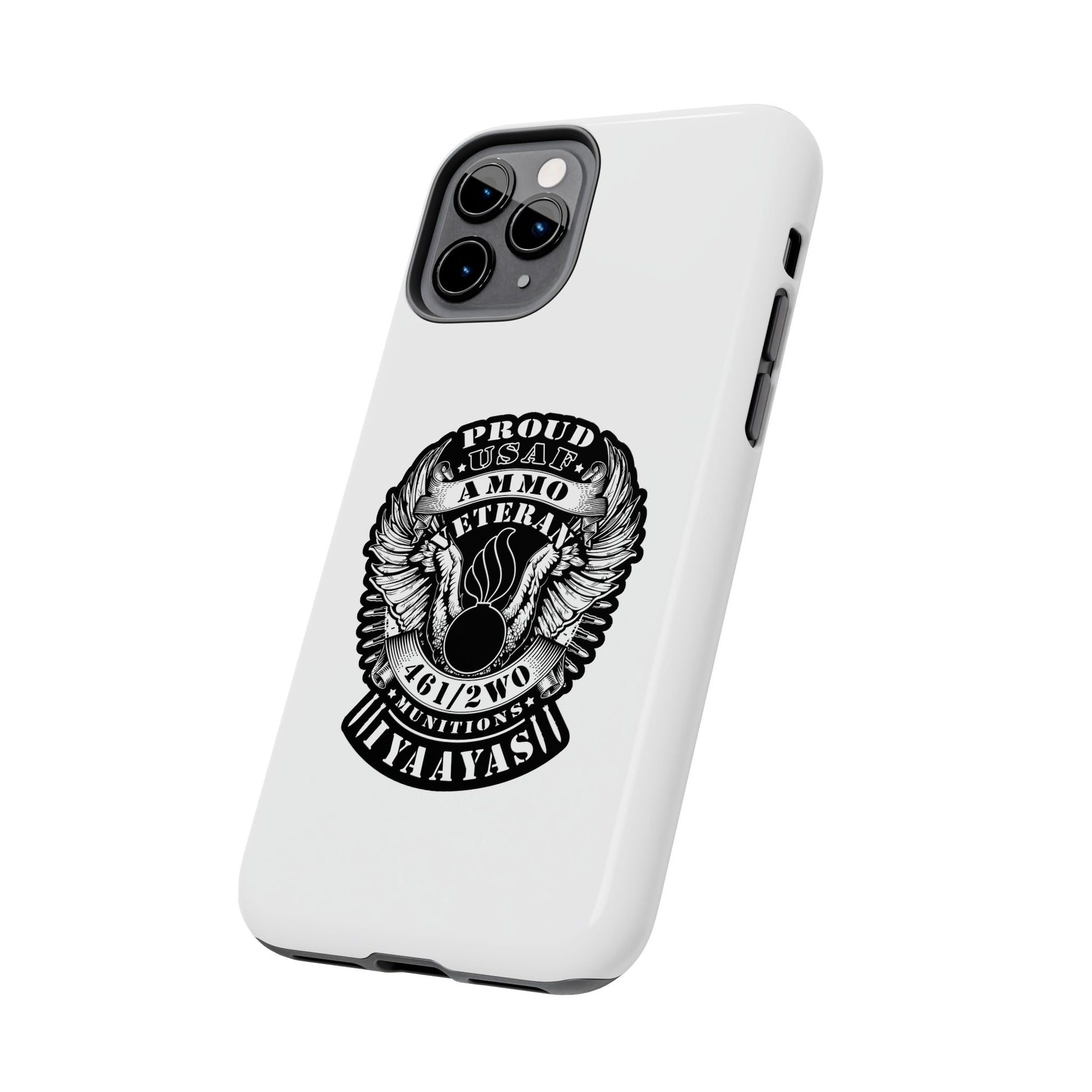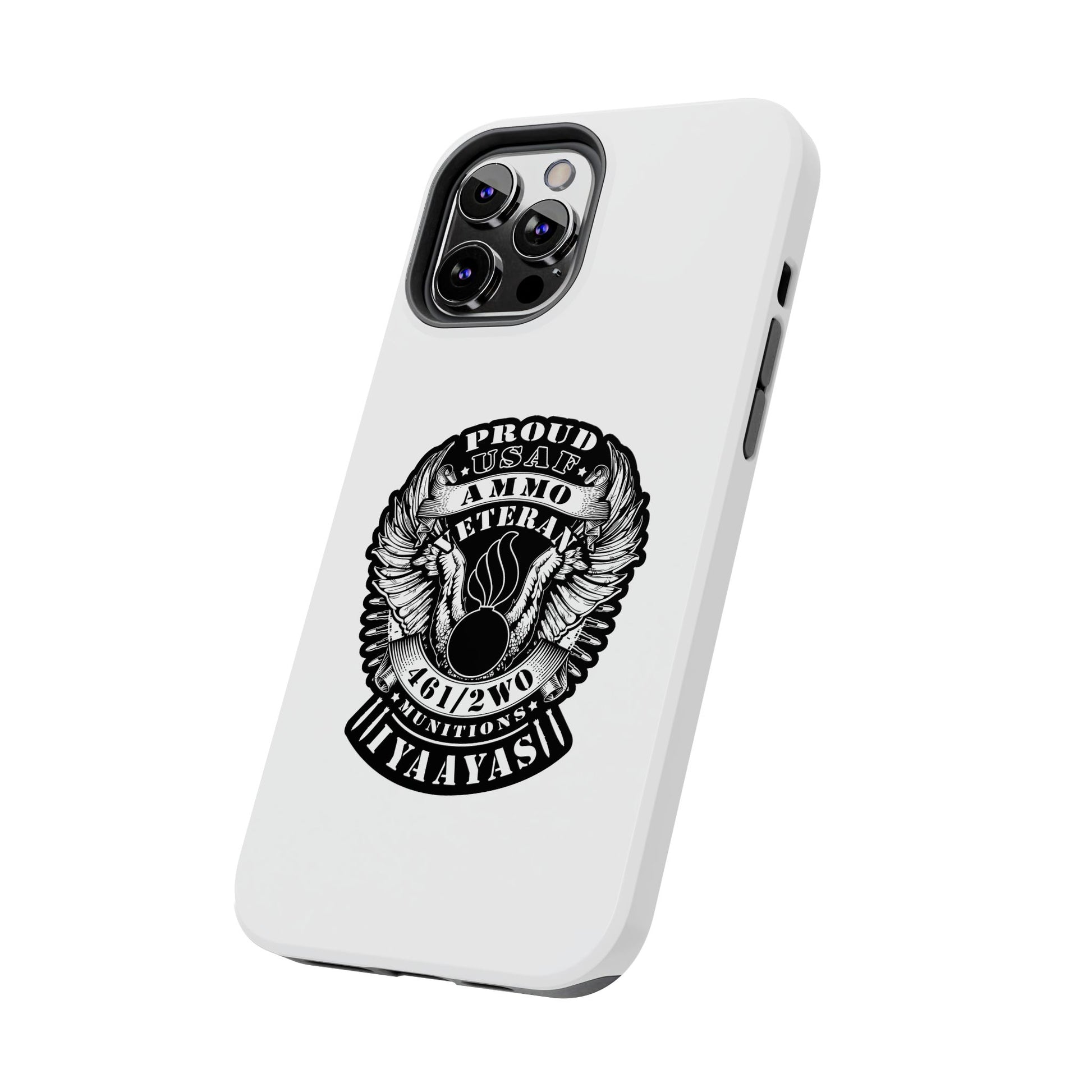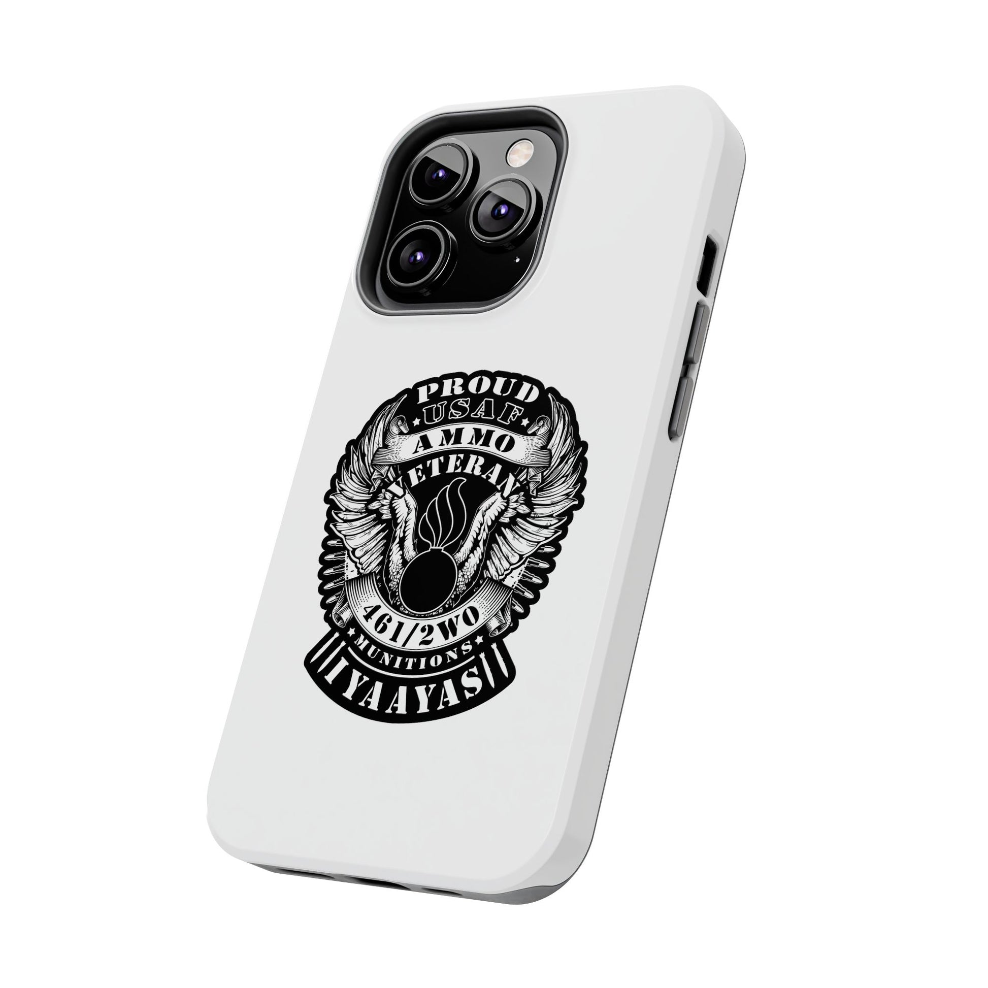 Proud USAF AMMO Veteran 461 2W0 Munitions IYAAYAS Pisspot Eagle Wings Vintage Ribbon Scrolls White Background Tough Phone Cases