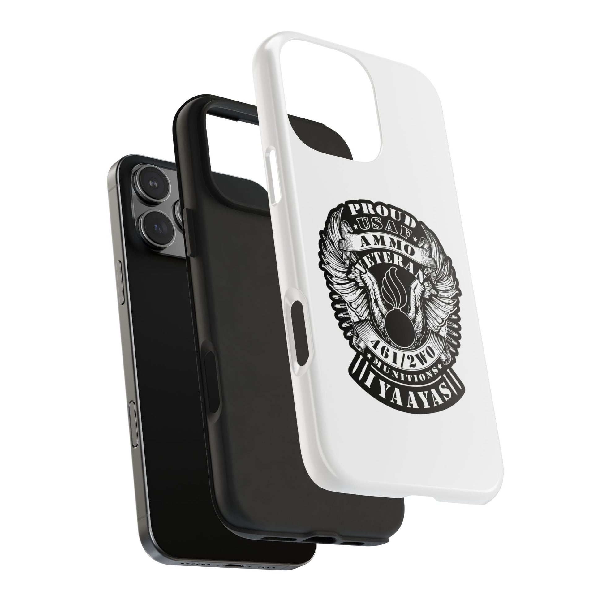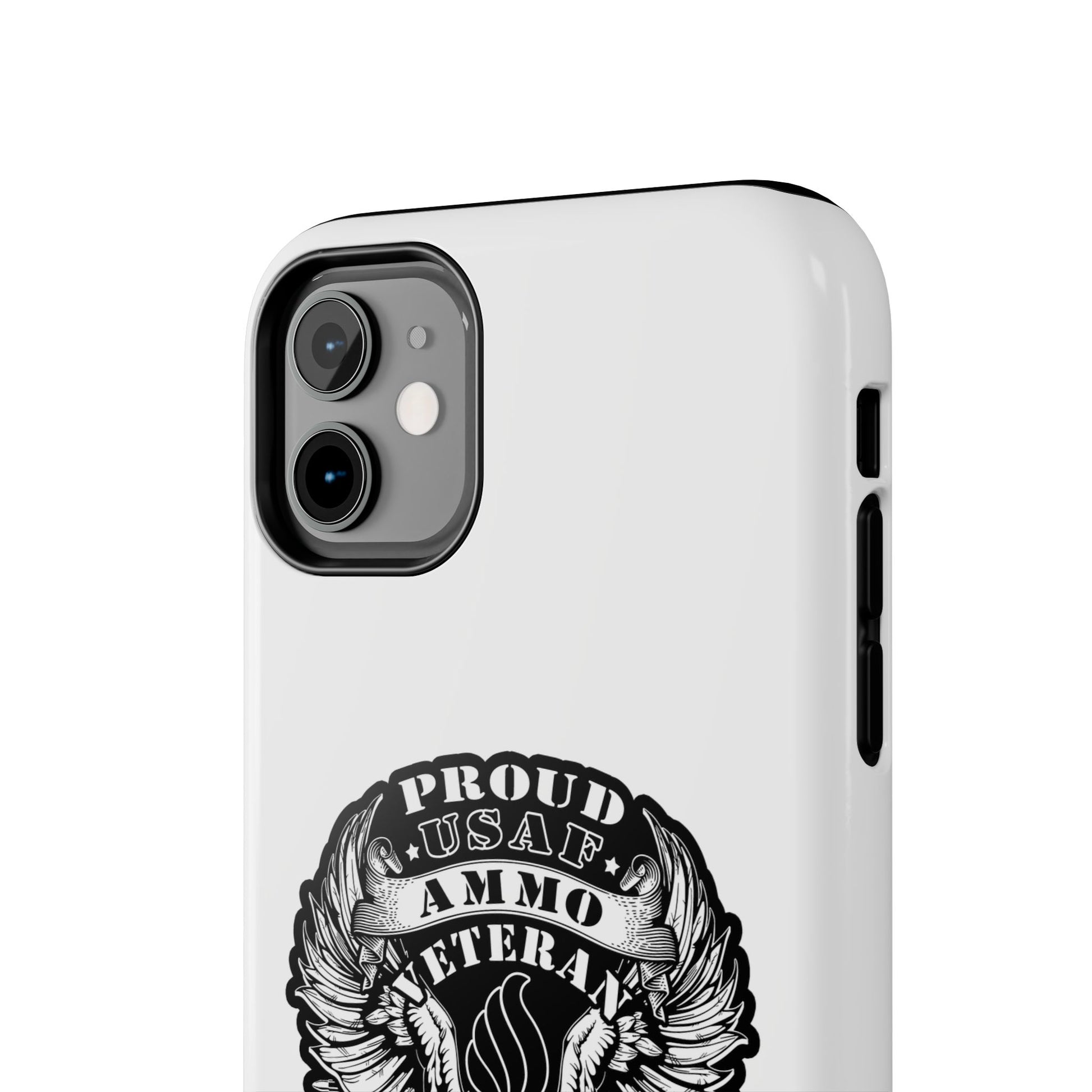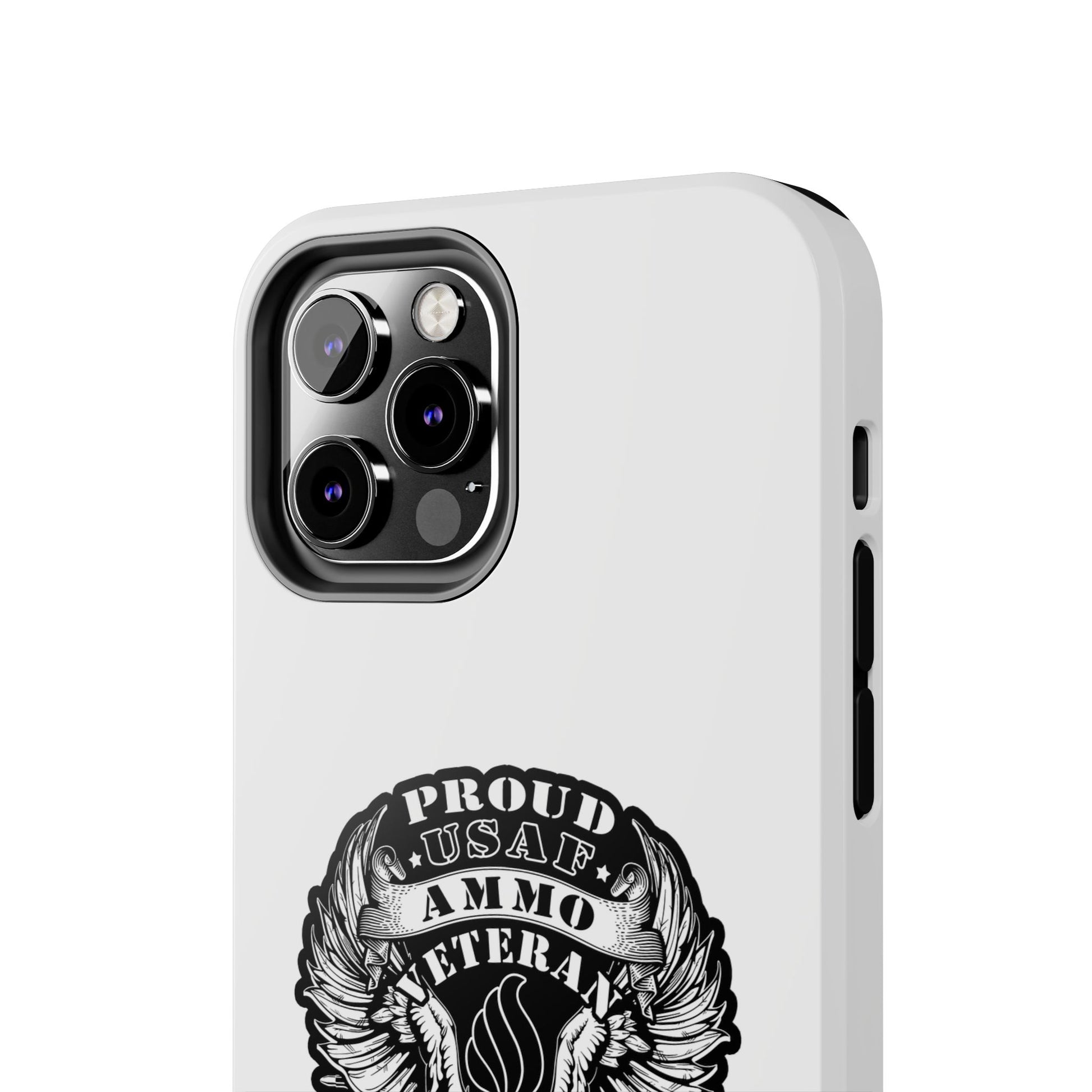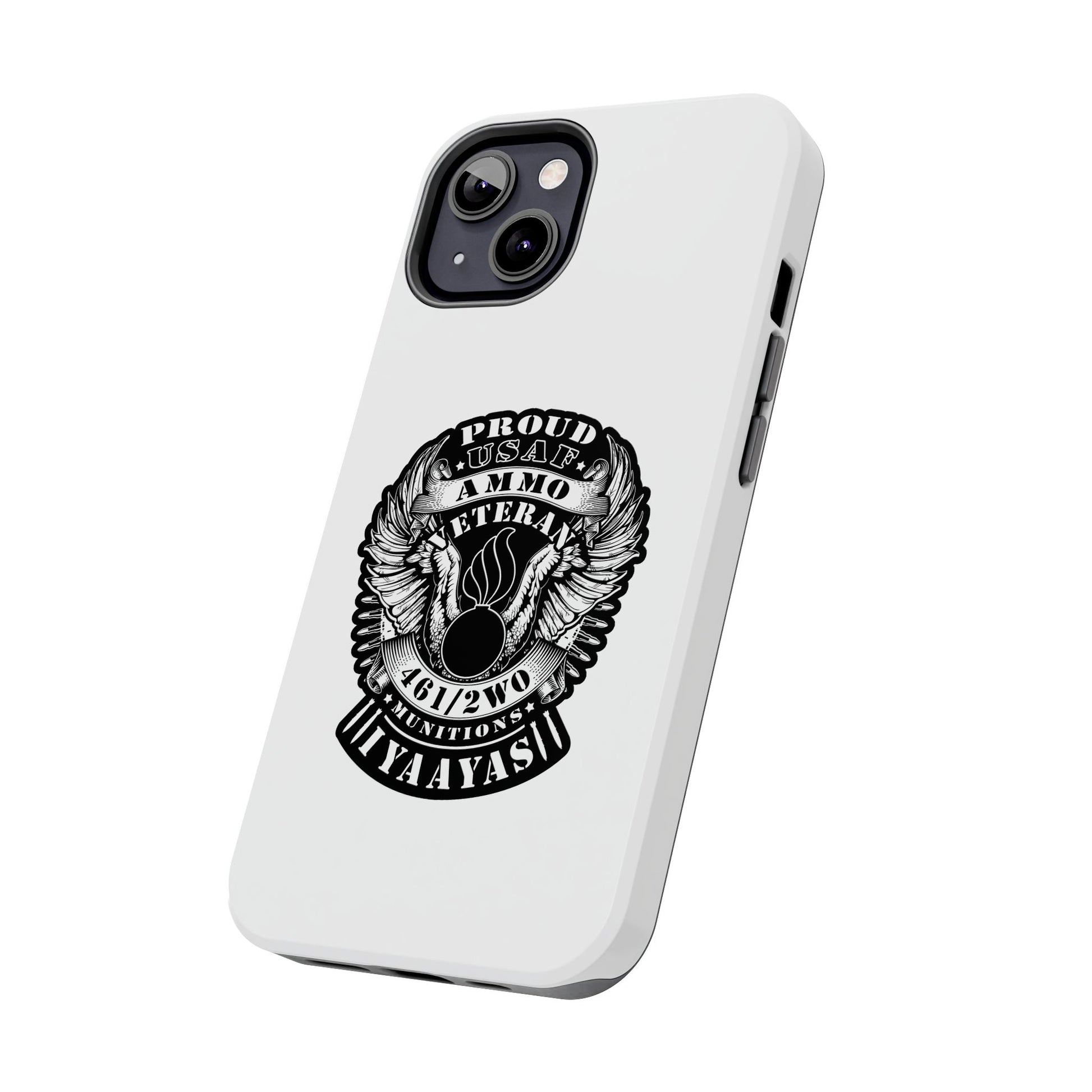 Proud USAF AMMO Veteran 461 2W0 Munitions IYAAYAS Pisspot Eagle Wings Vintage Ribbon Scrolls White Background Tough Phone Cases
