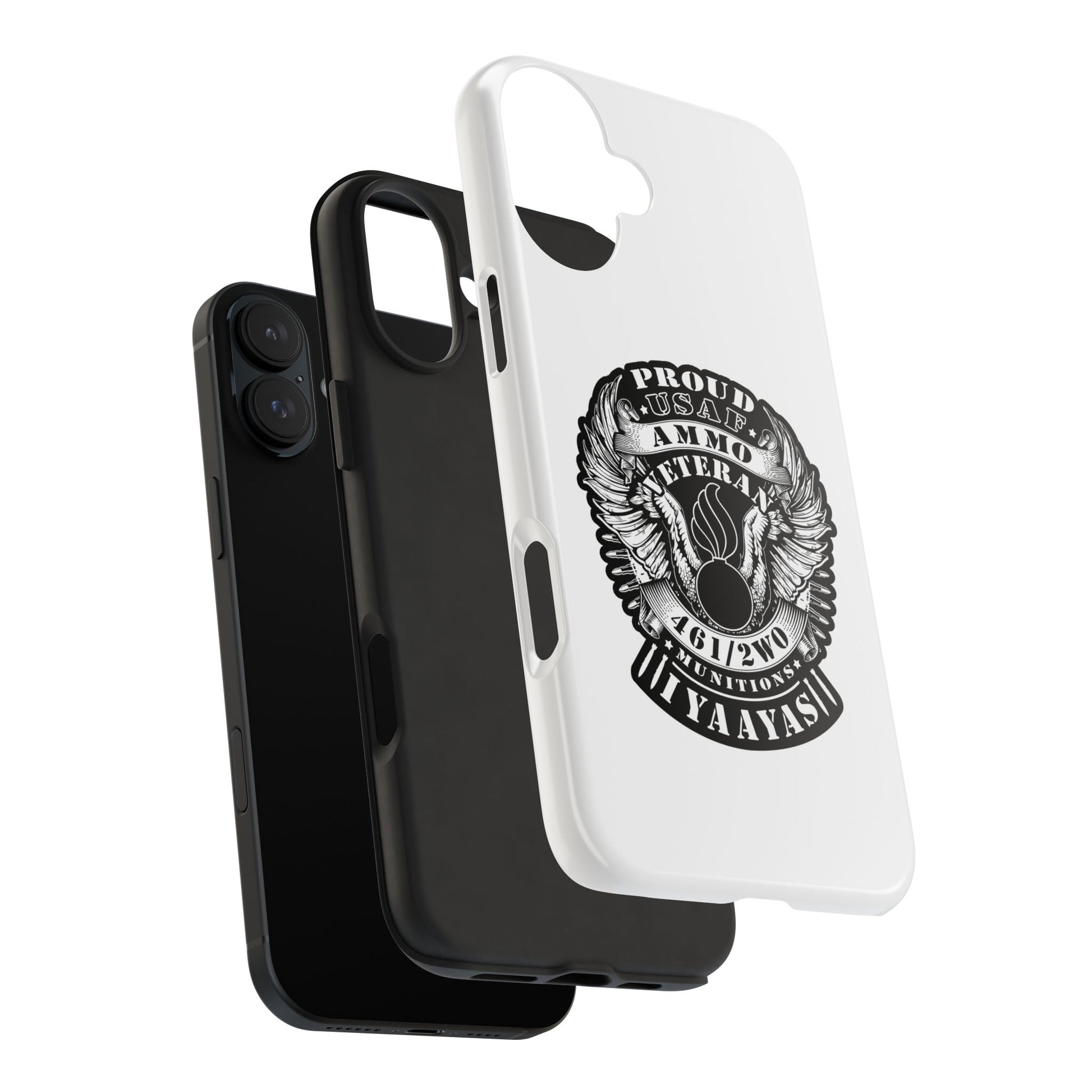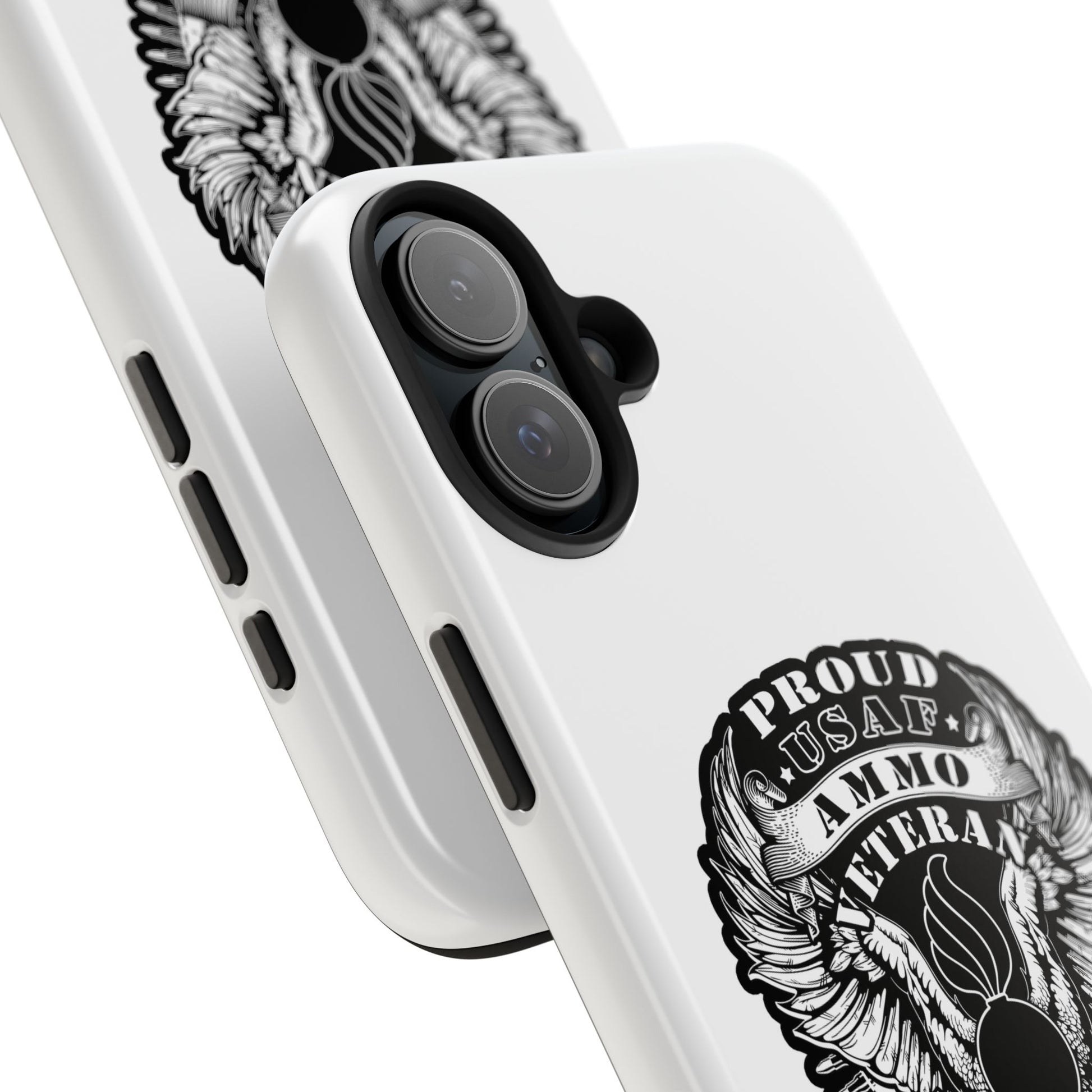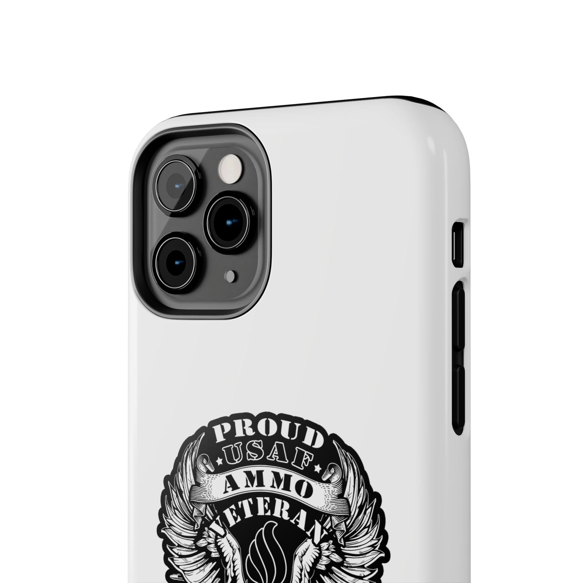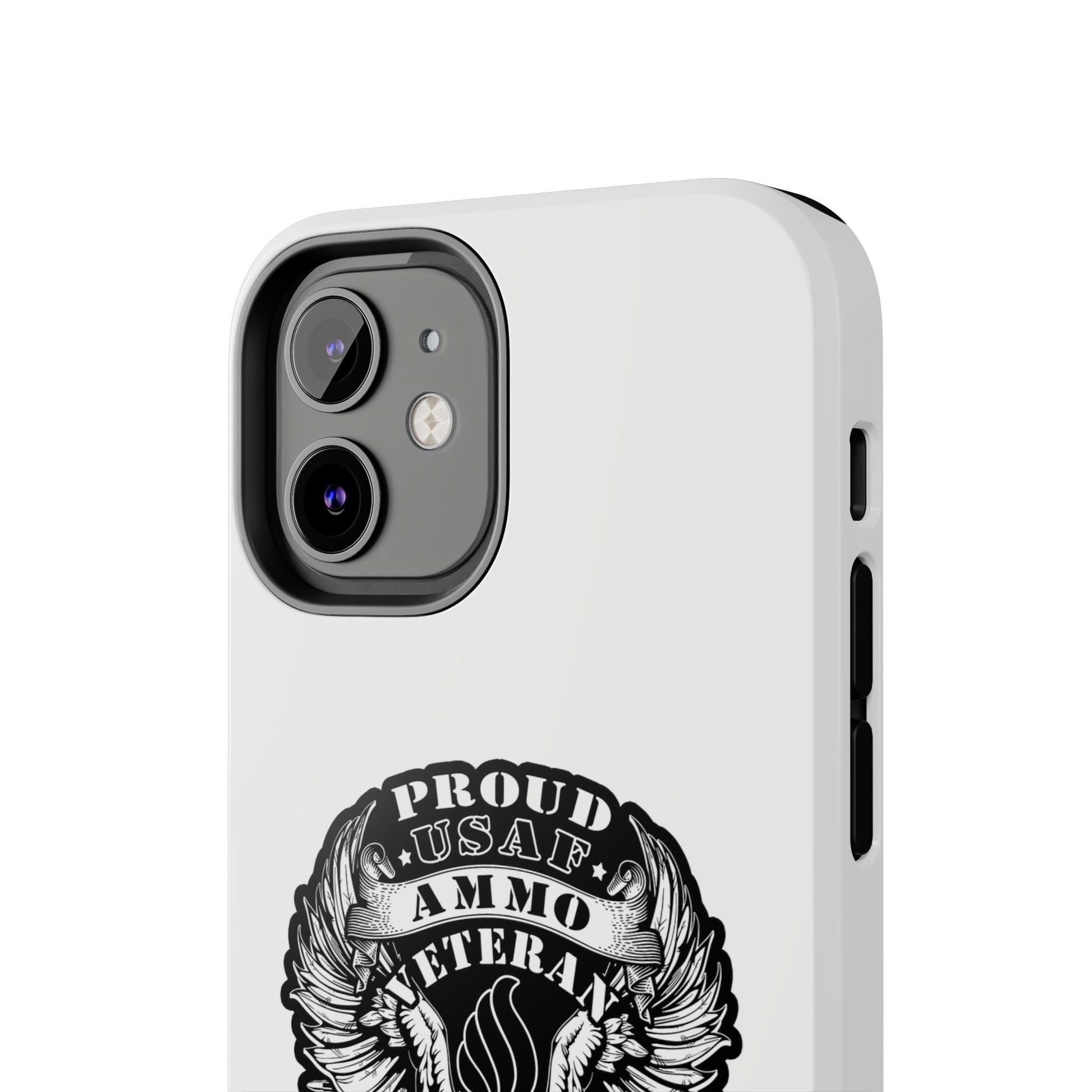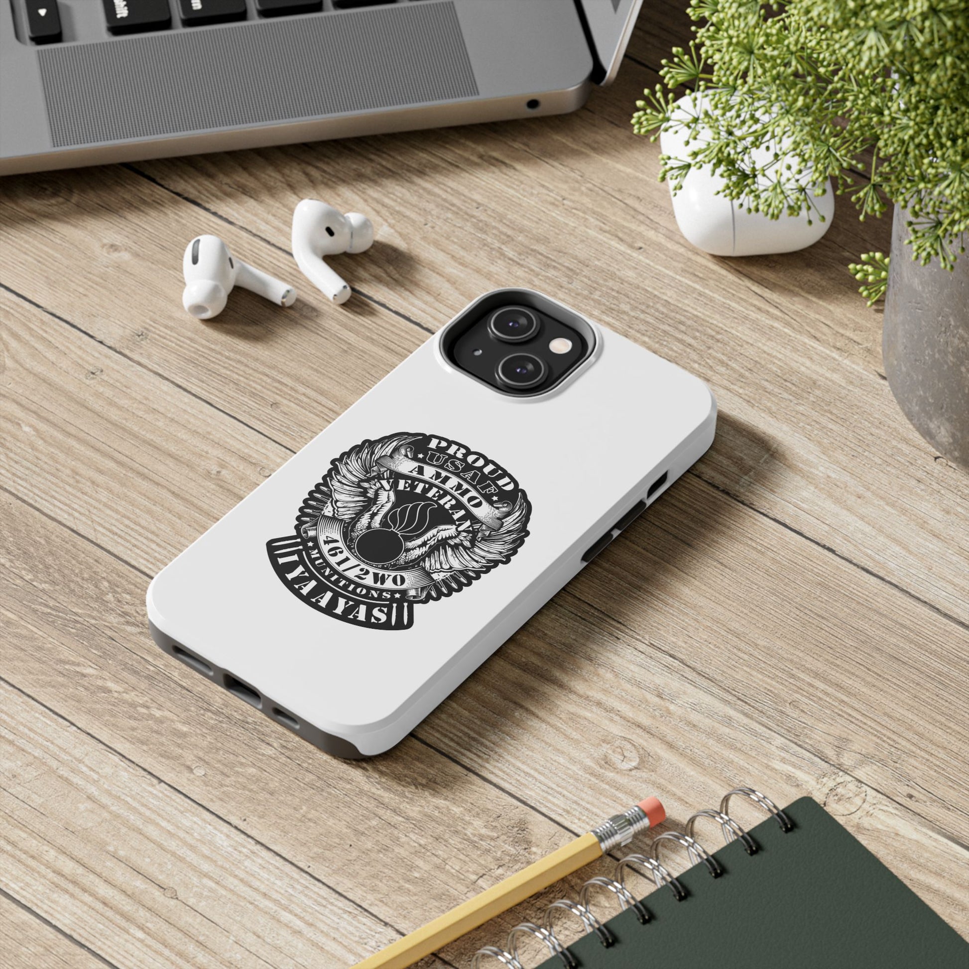 Proud USAF AMMO Veteran 461 2W0 Munitions IYAAYAS Pisspot Eagle Wings Vintage Ribbon Scrolls White Background Tough Phone Cases