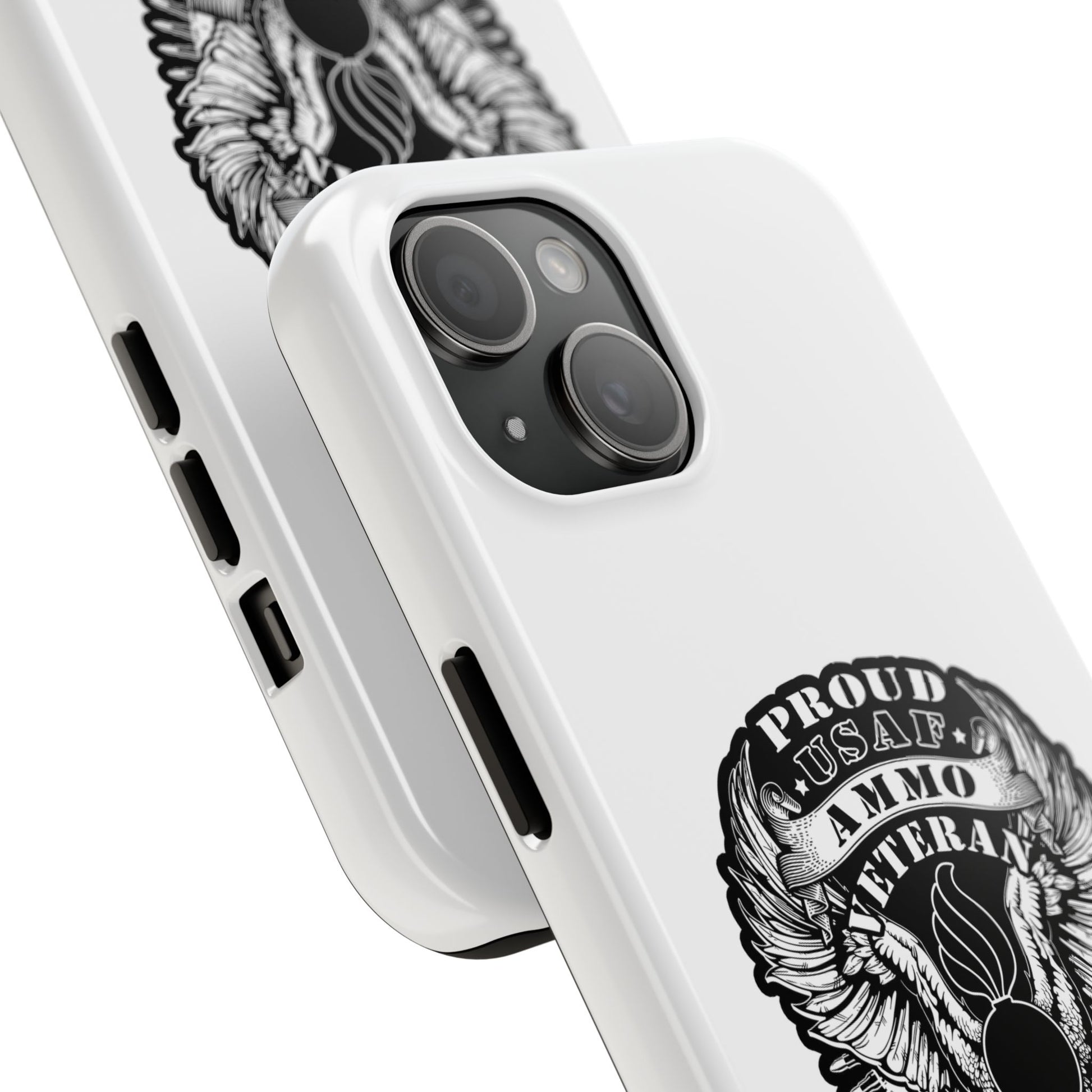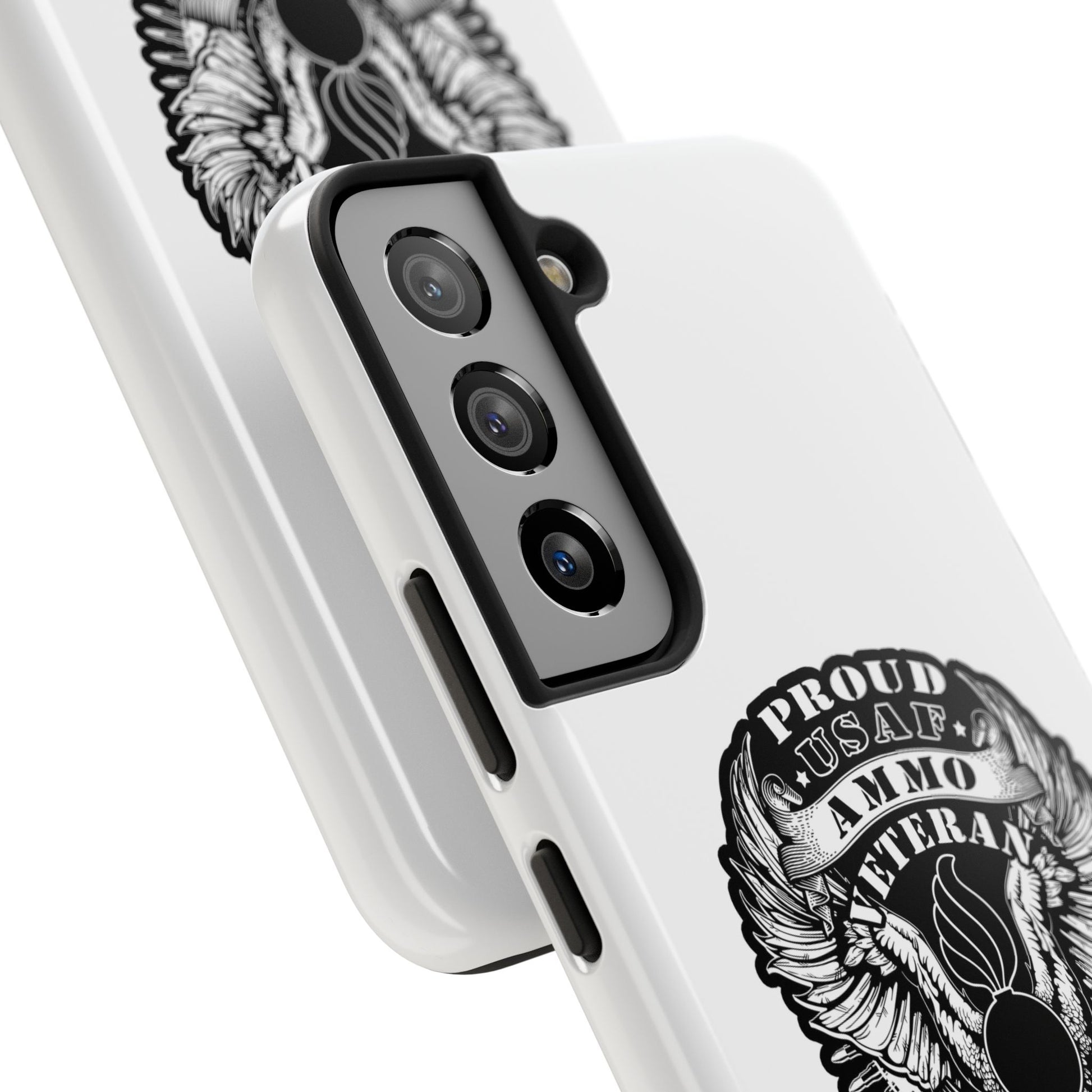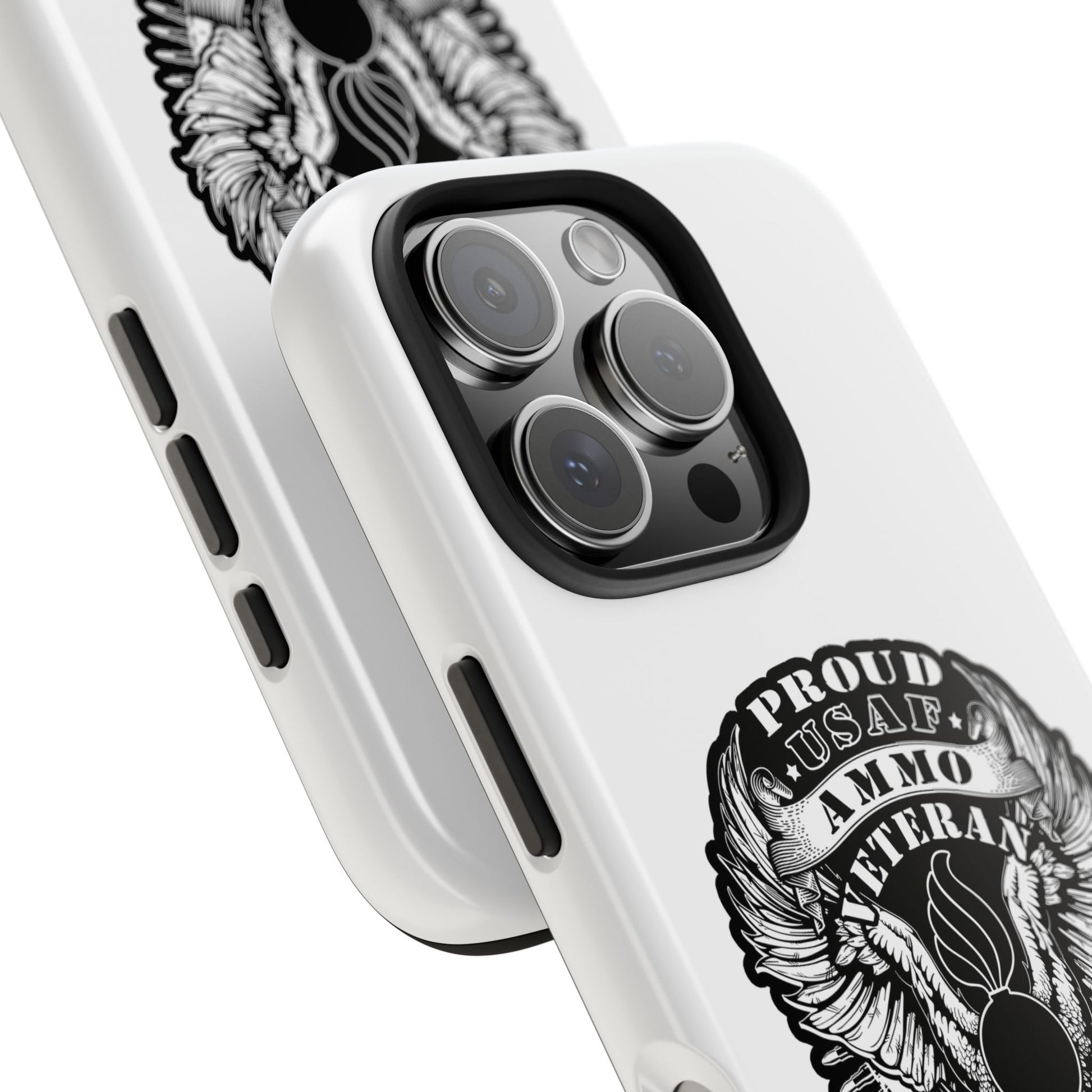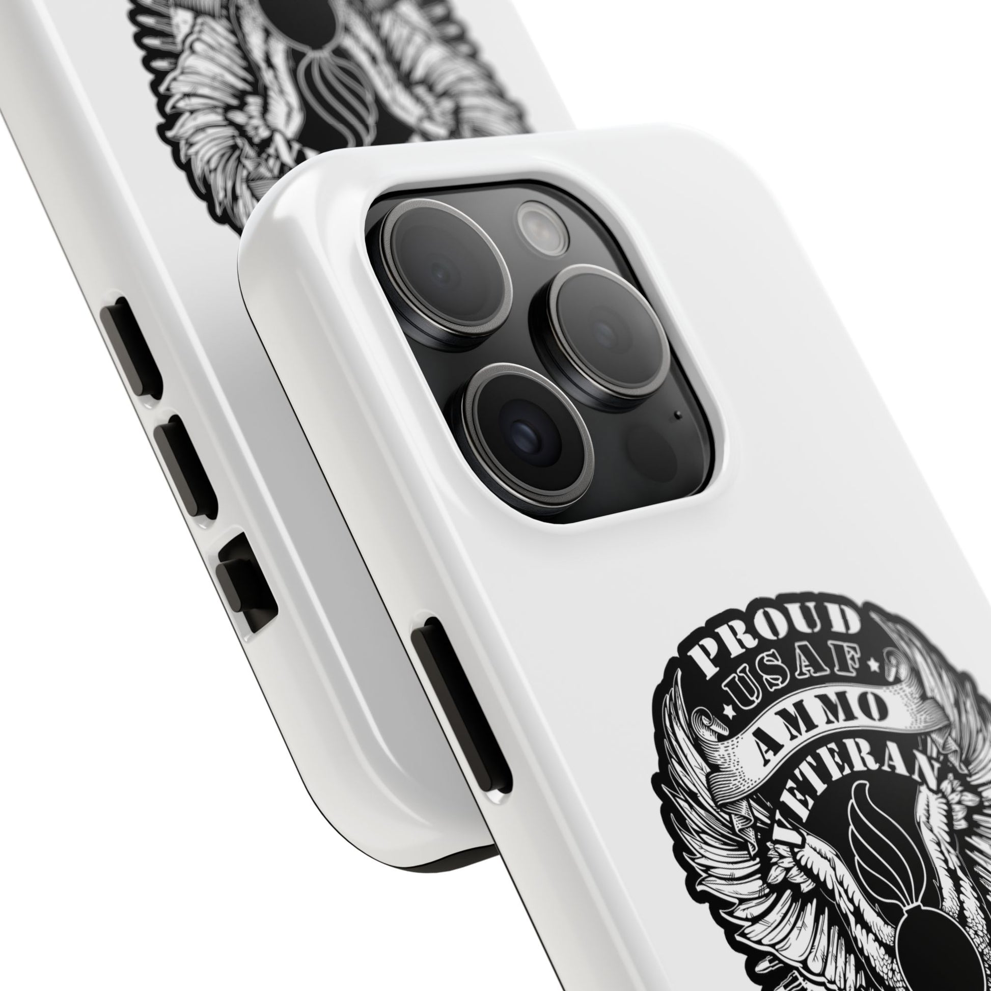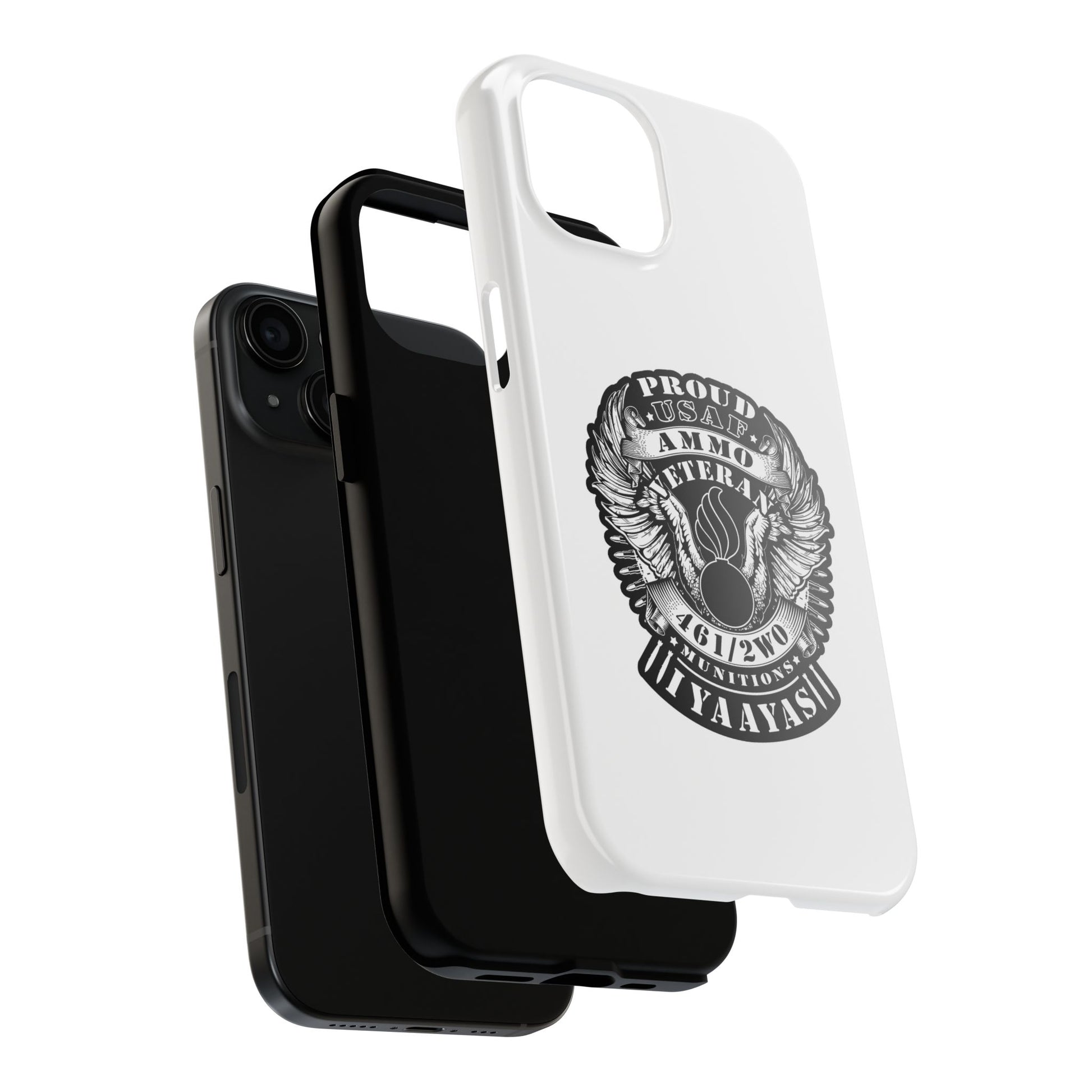 Proud USAF AMMO Veteran 461 2W0 Munitions IYAAYAS Pisspot Eagle Wings Vintage Ribbon Scrolls White Background Tough Phone Cases