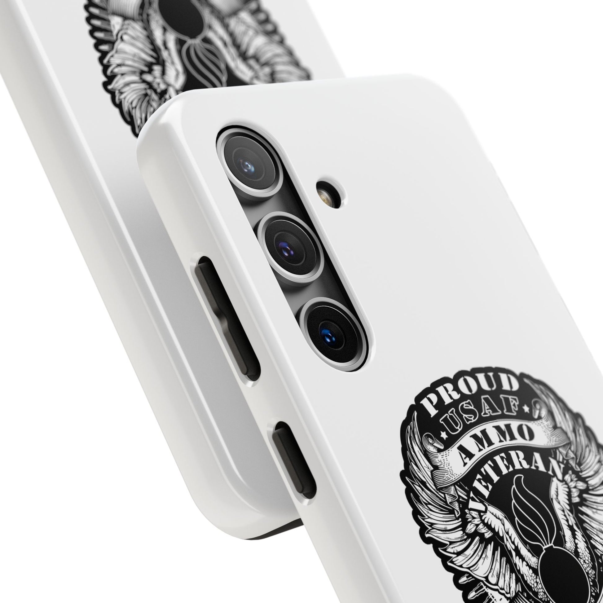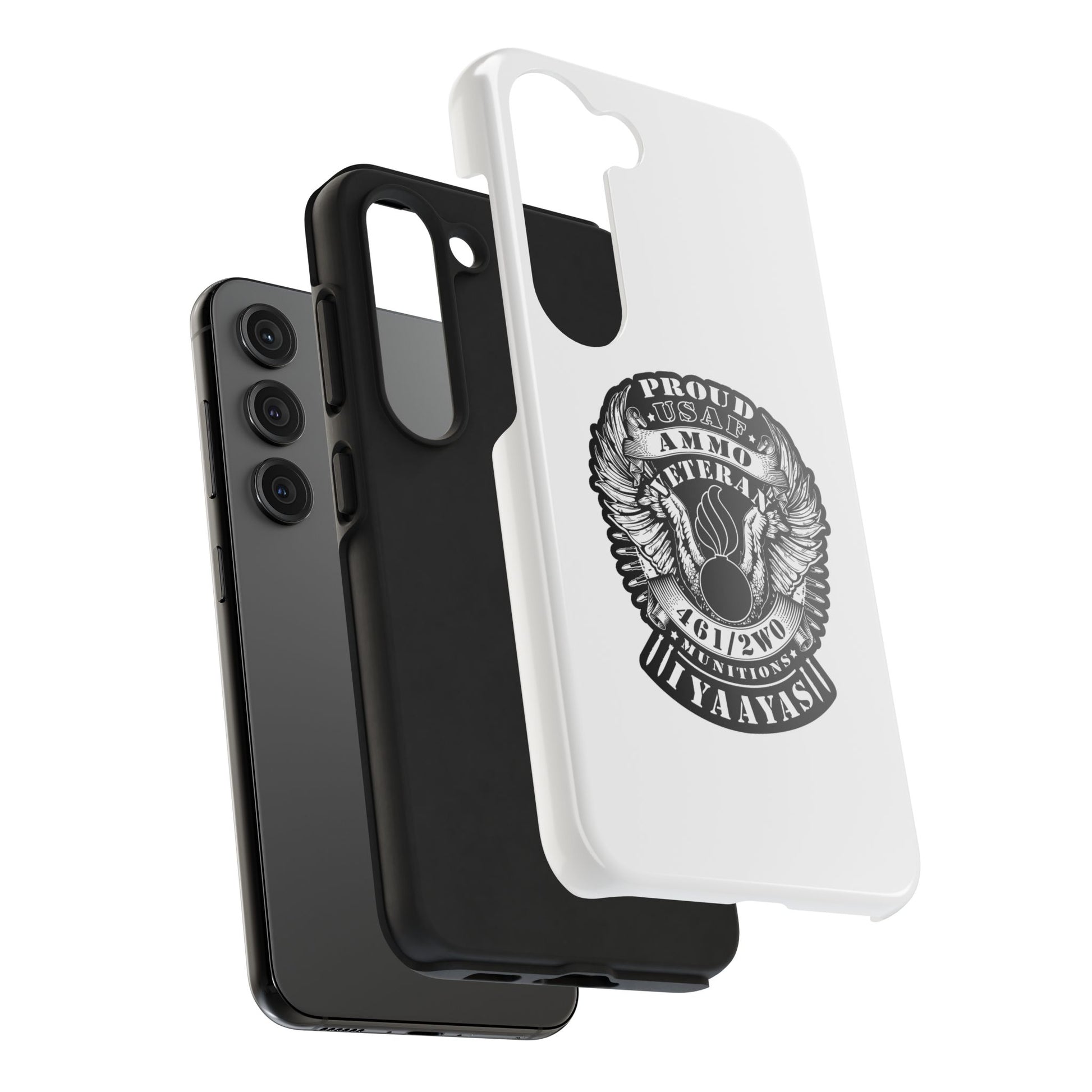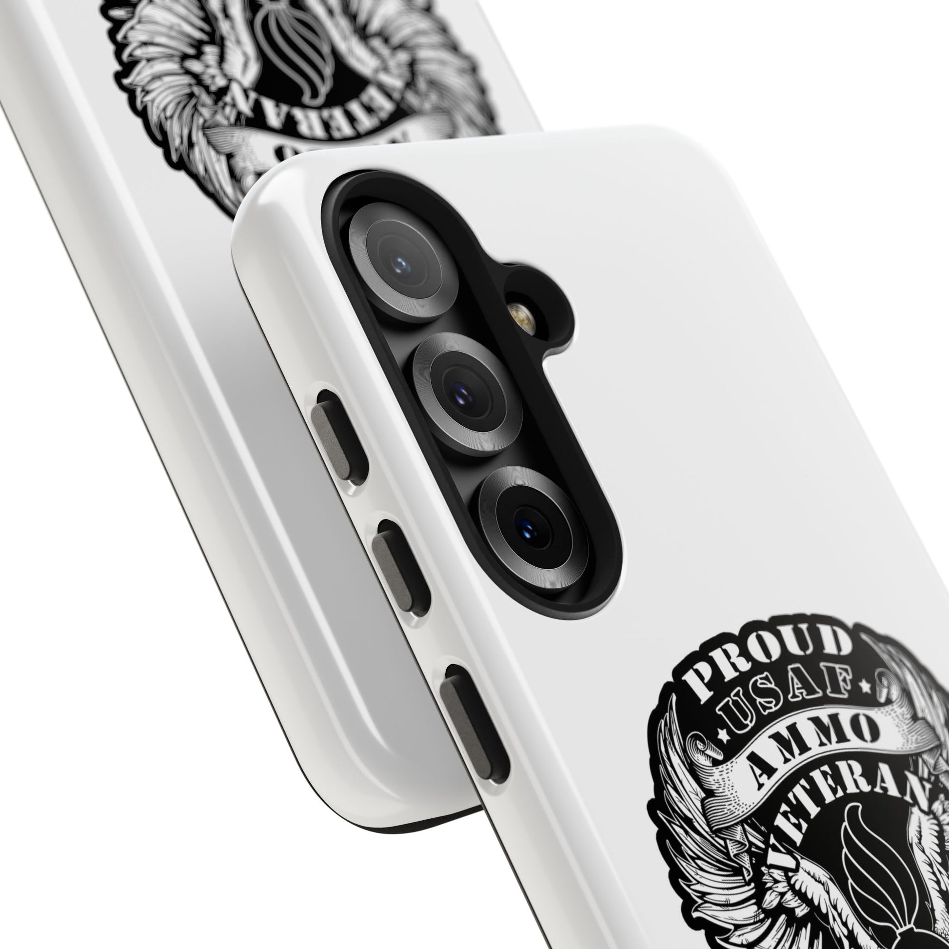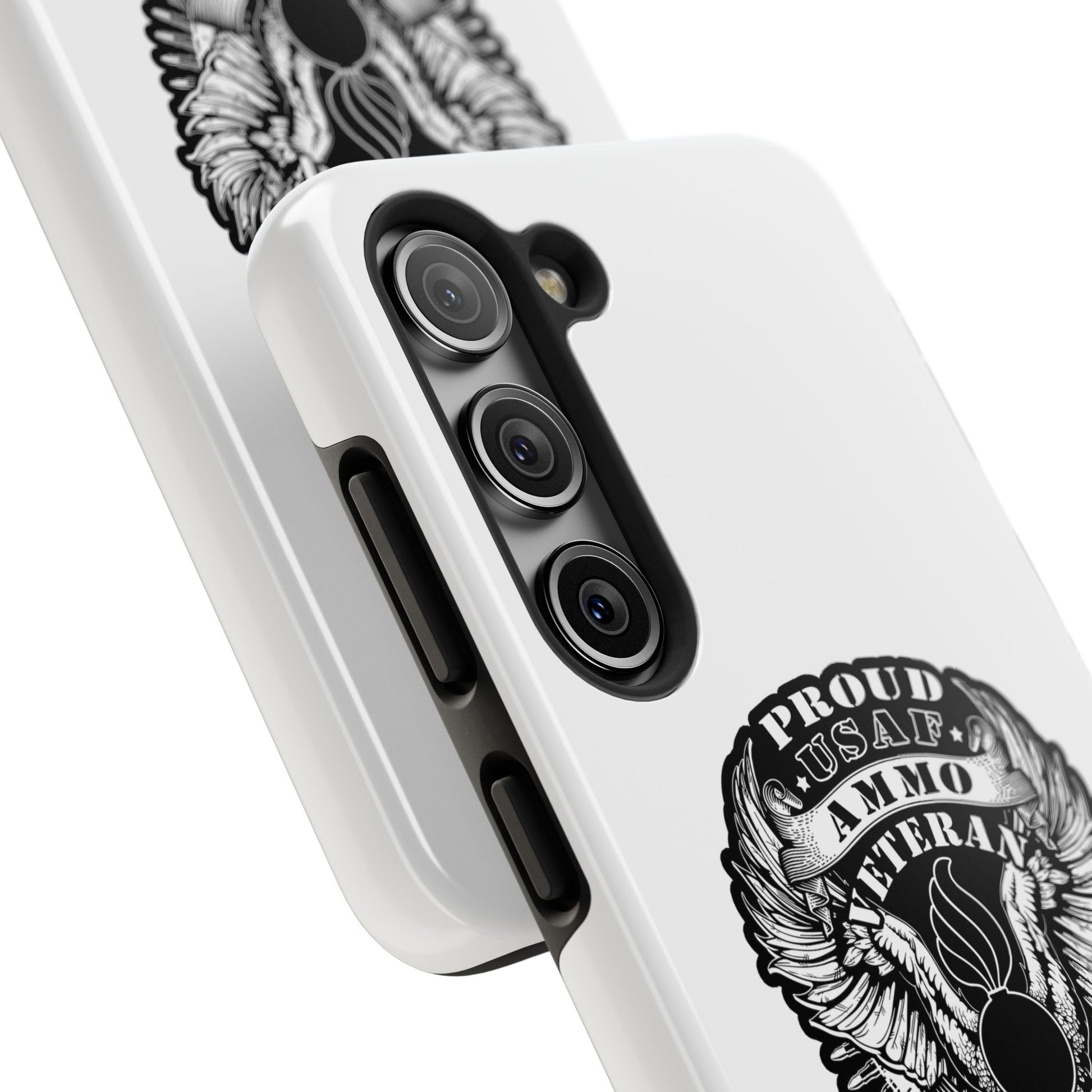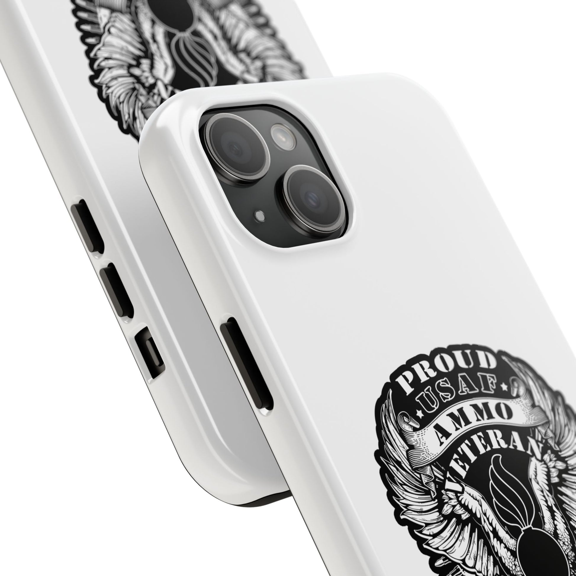 Proud USAF AMMO Veteran 461 2W0 Munitions IYAAYAS Pisspot Eagle Wings Vintage Ribbon Scrolls White Background Tough Phone Cases