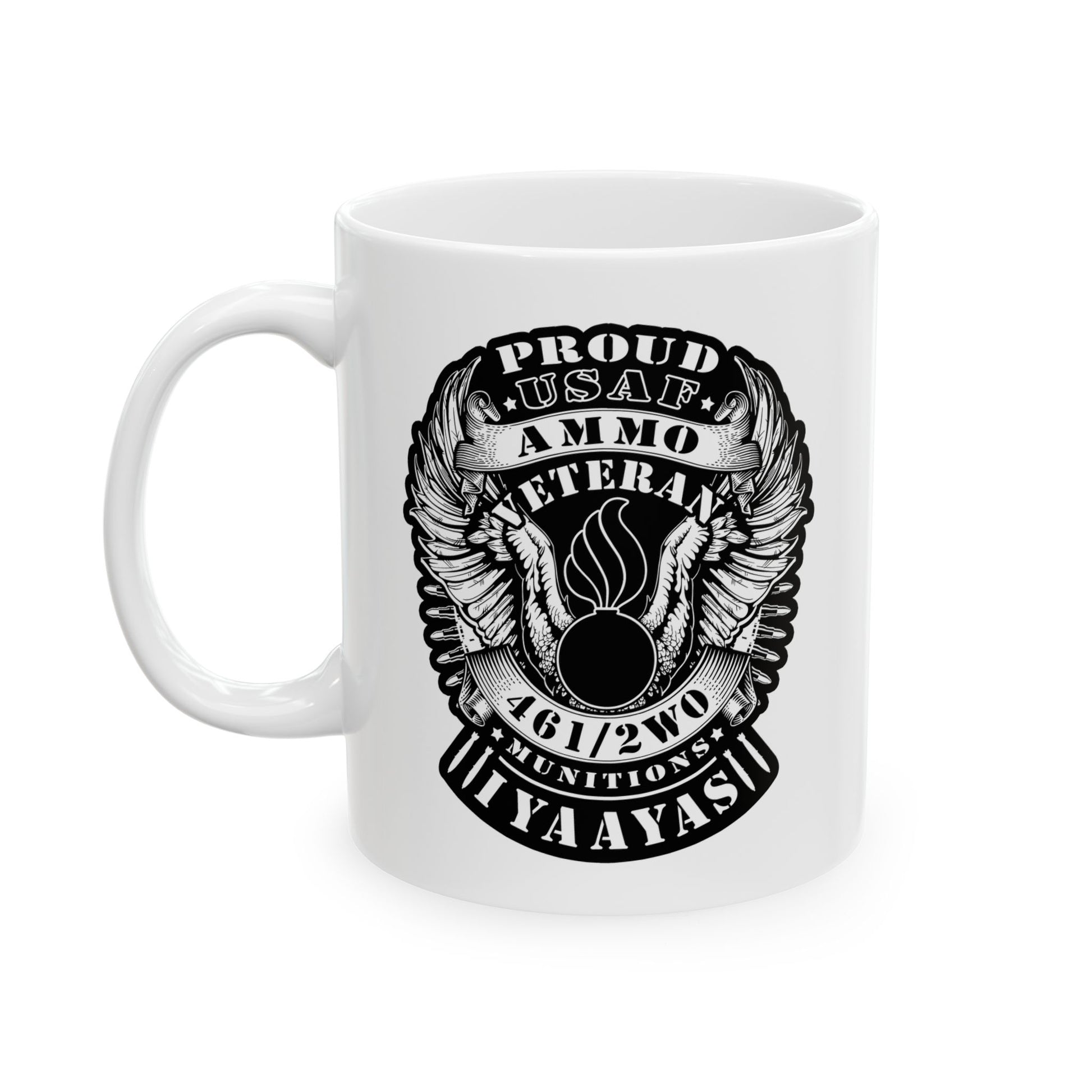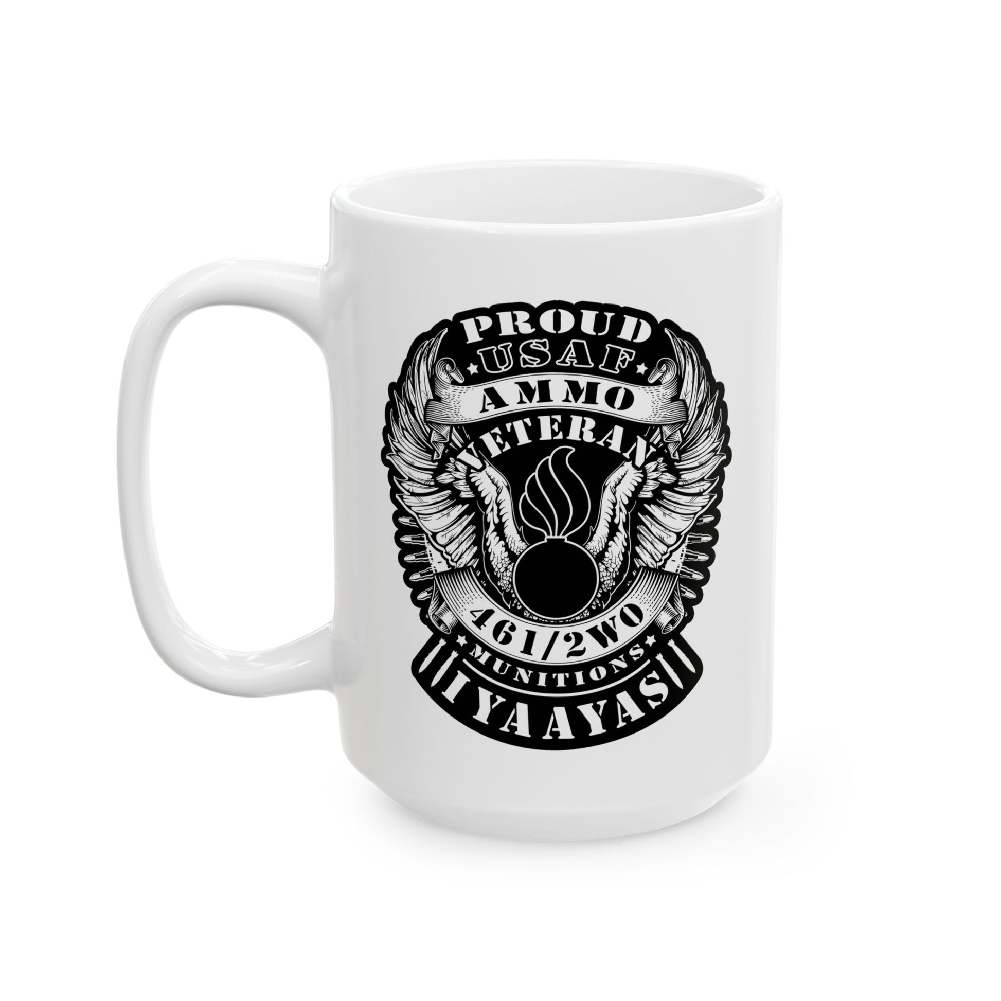 Proud USAF AMMO Veteran 461 2W0 Munitions IYAAYAS Pisspot Eagle Wings Vintage Scroll Ribbons Ceramic Mug, (11oz, 15oz)