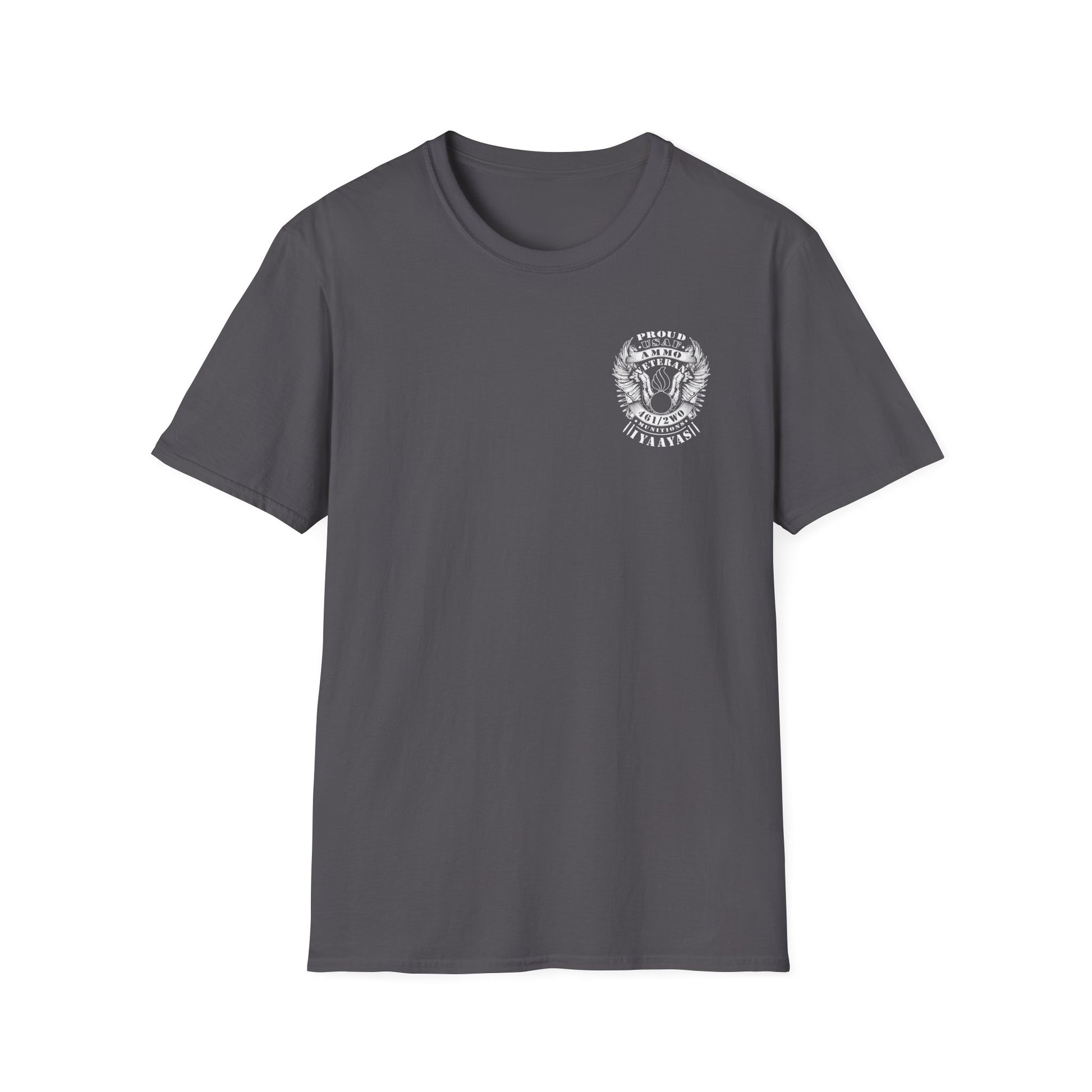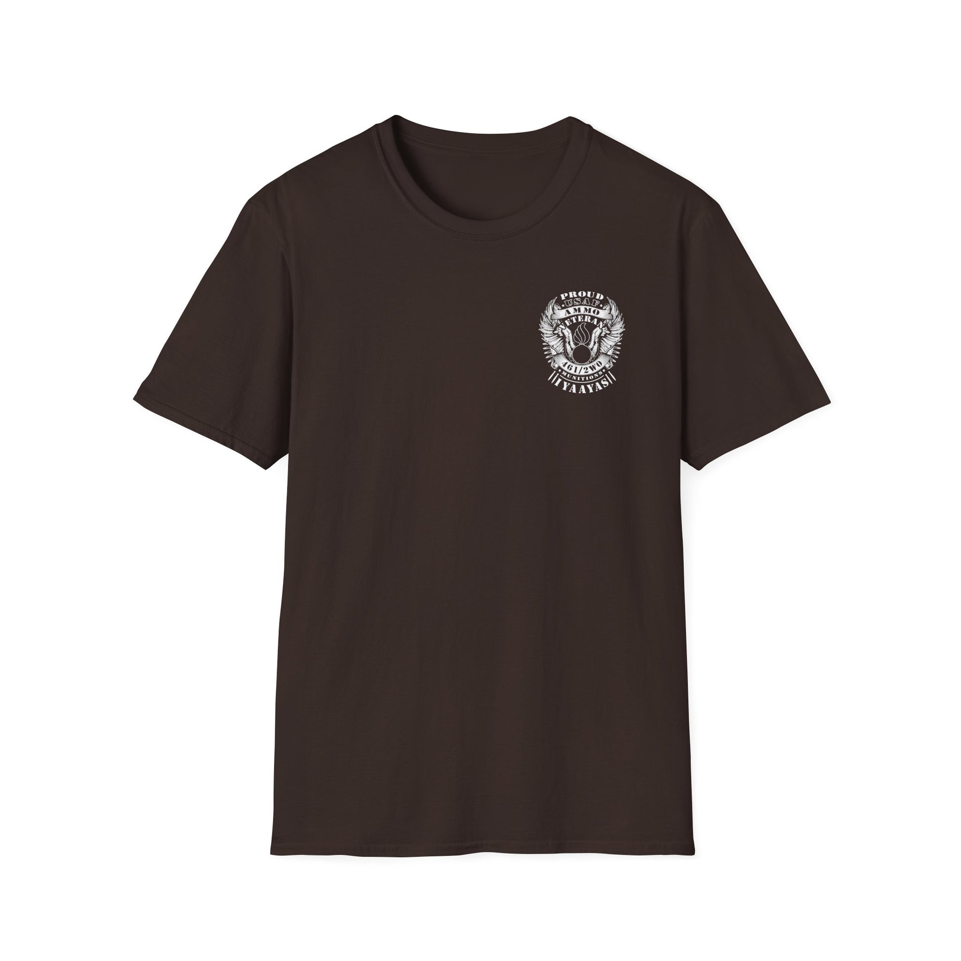 Proud USAF AMMO Veteran 461 2W0 Munitions IYAAYAS Pisspot Eagle Wings Vintage Scroll Ribbons Unisex Softstyle T-Shirt