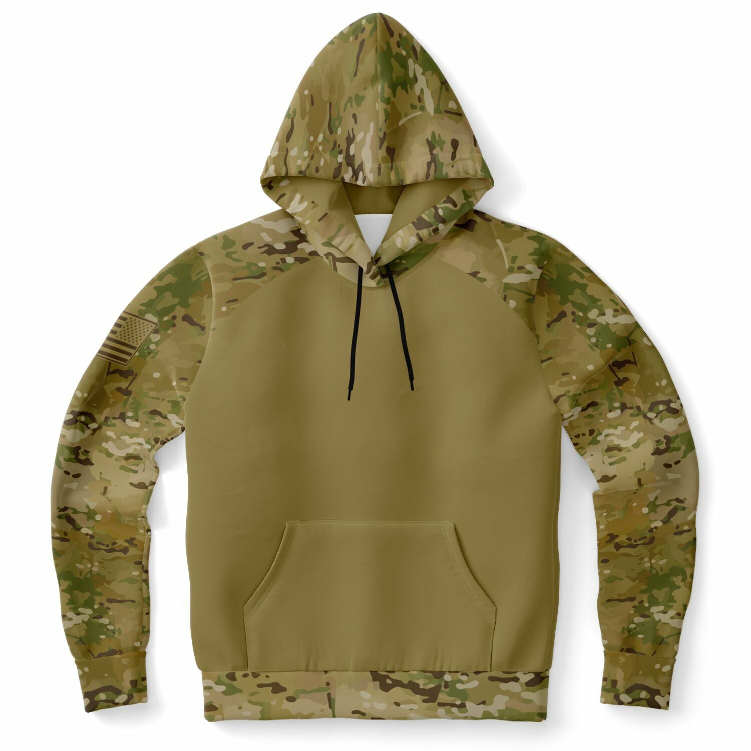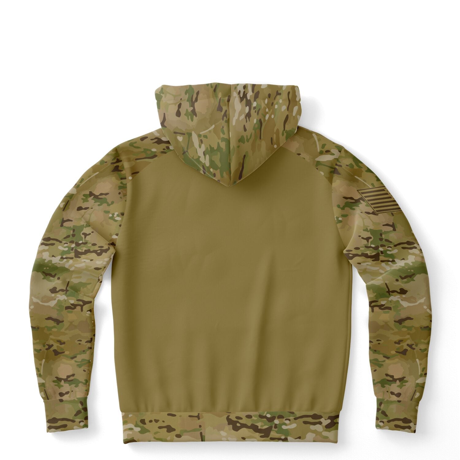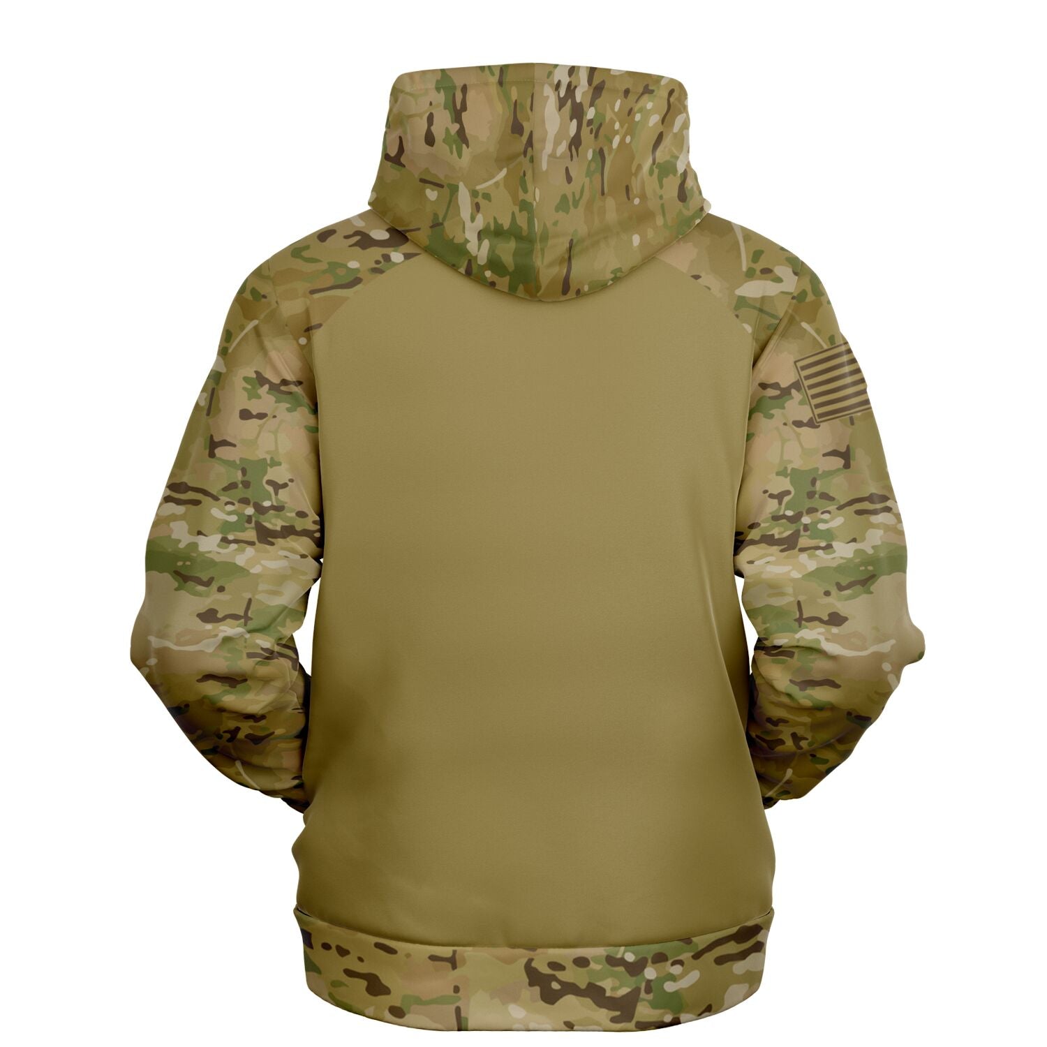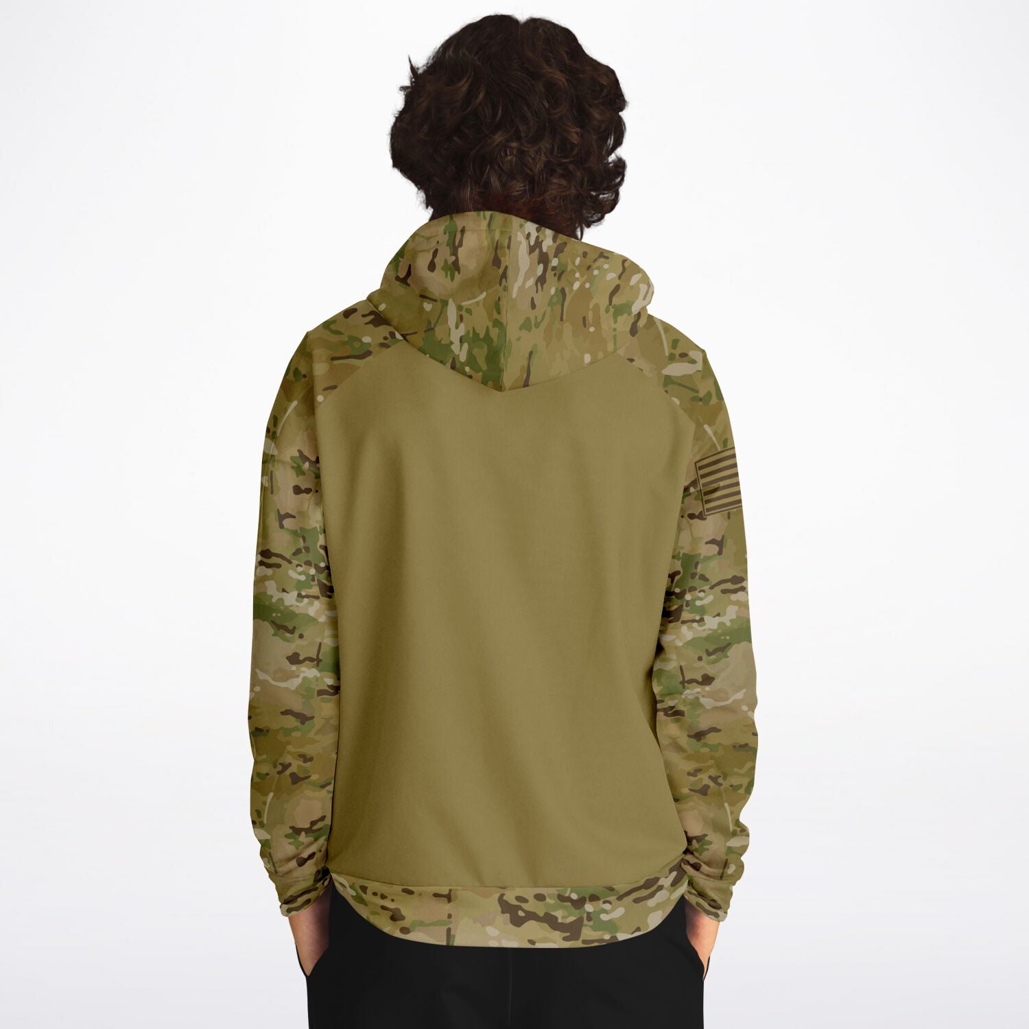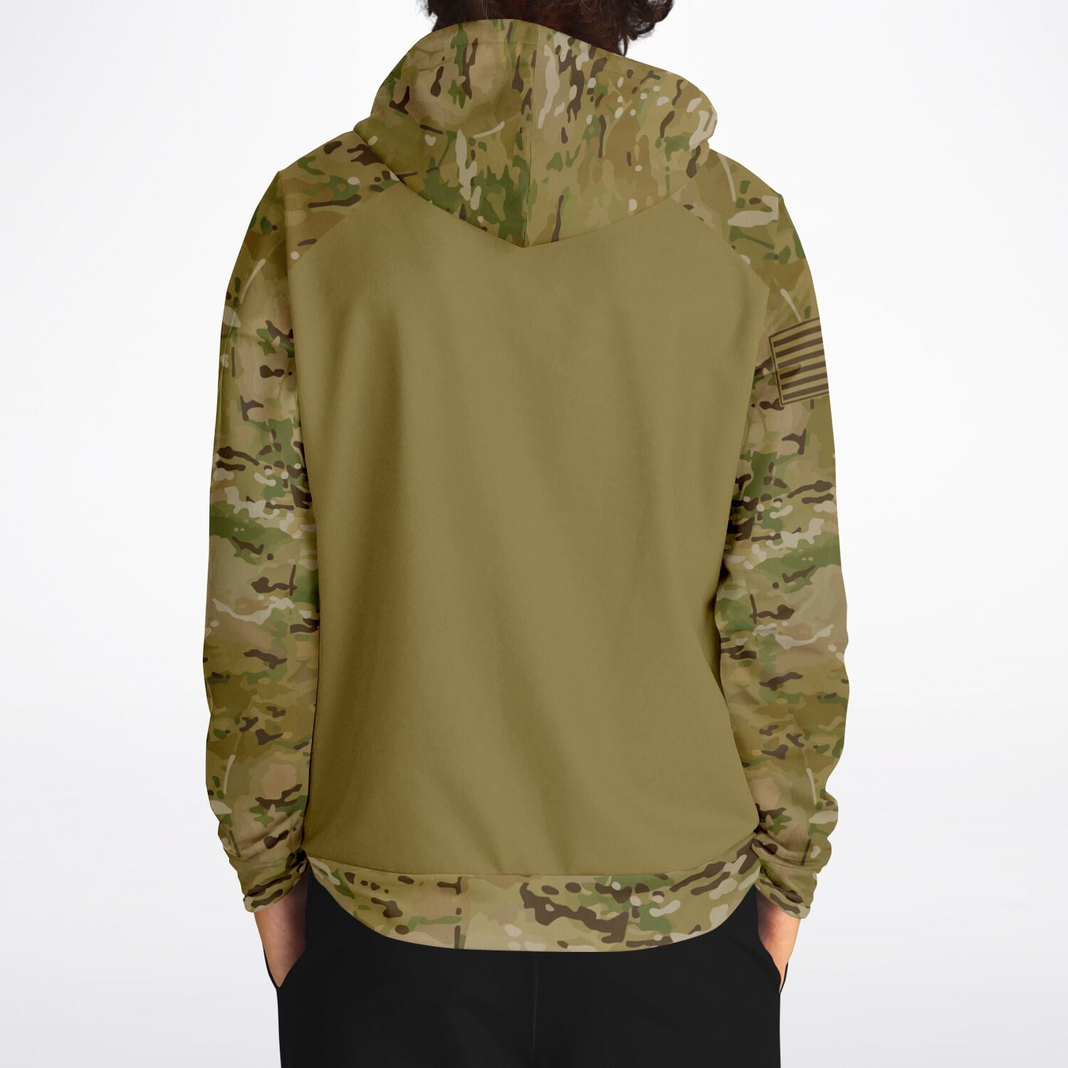 Features an OCP camouflage style pattern on the outer hood, both sleeves/cuffs, the upper part of the front and back and the lower part waistband area of the front and back.